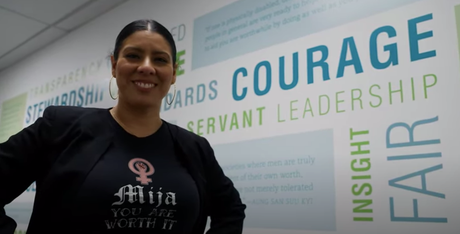 The Latina officer in the video also says: “I can change a diaper in one hand and console a crying toddler with the other. I earned my way in and I earned my way up the ranks.”