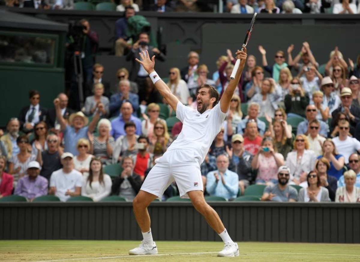 The 28-year-old raised his arms to the sky in triumph as he celebrated becoming the first Croatian to reach the men's singles final at Wimbledon since Goran Ivanisevic in 2001.