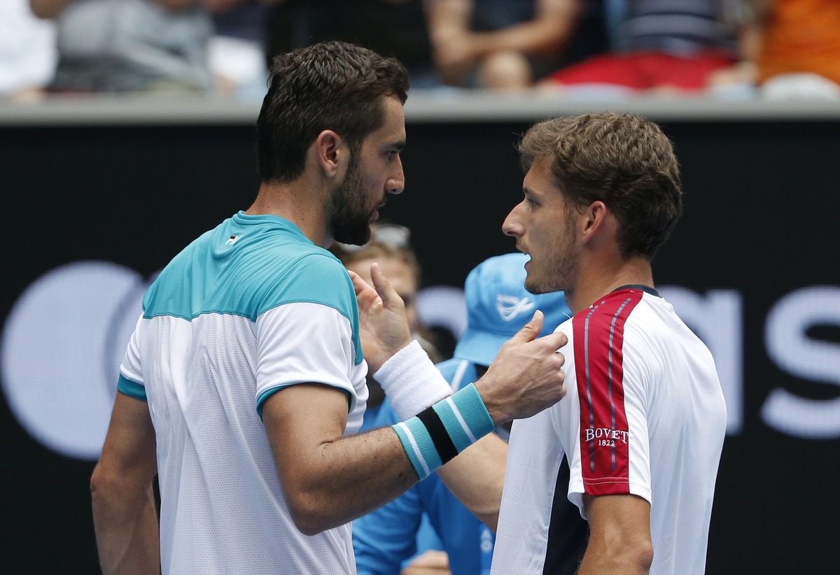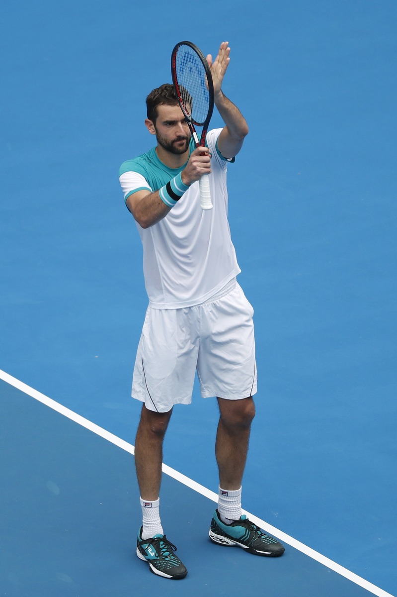 MELBOURNE (Reuters) - Former U.S. Open champion Marin Cilic became the first man into the quarter-finals of the Australian Open when he ground down Spaniard Pablo Carreno Busta 6-7(2) 6-3 7-6(0) 7-6(3) on Sunday.