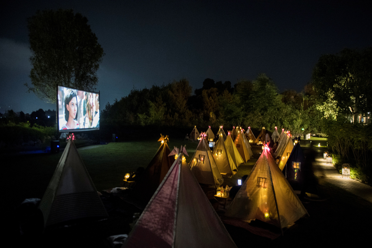 Known as 'Cinema Under the Stars', the outdoor camp-style movie space opened two months ago in the capital of Indonesia's most populous province of West Java with the aim of keeping people both entertained and socially distanced.