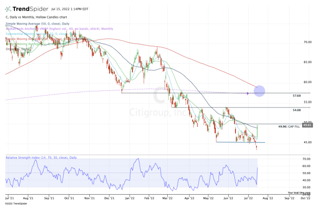 - The $50 level, which is the gap-fill from June. Citi finished Friday just 2 cents short of this point.
