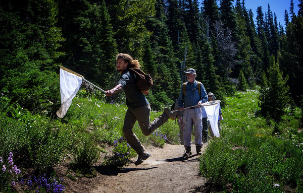 Suddenly, Tucker Grigsby, an intern with the National Park Service, lurches forward and bounds down the trail. With a snap of the wrist worthy of Roger Federer, he flicks a net through the air and captures his floating prize _ a magnificent orange and black banded butterfly.