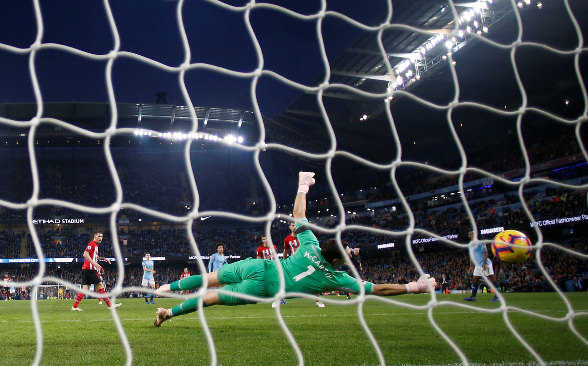 MANCHESTER, England (Reuters) - With two minutes to go and his team 5-1 up against Southampton in Sunday's Premier League encounter, Manchester City manager Pep Guardiola put his head into his hands after witnessing a sloppy pass.