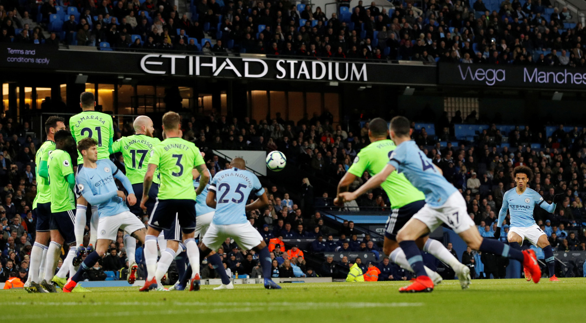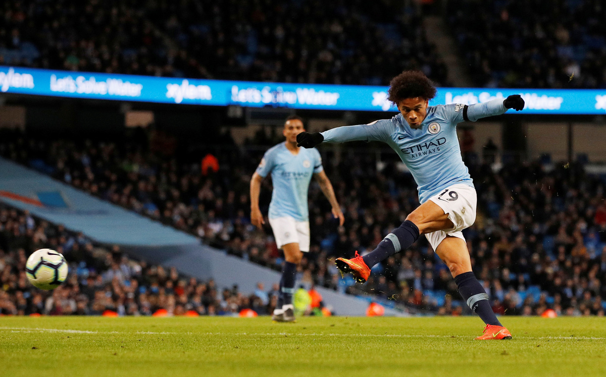 City strutted and moved the ball with their customary ease but it was not until a minute before the break that Leroy Sane made it 2-0 with a sweet left-foot drive after a clever chest pass from Gabriel Jesus.