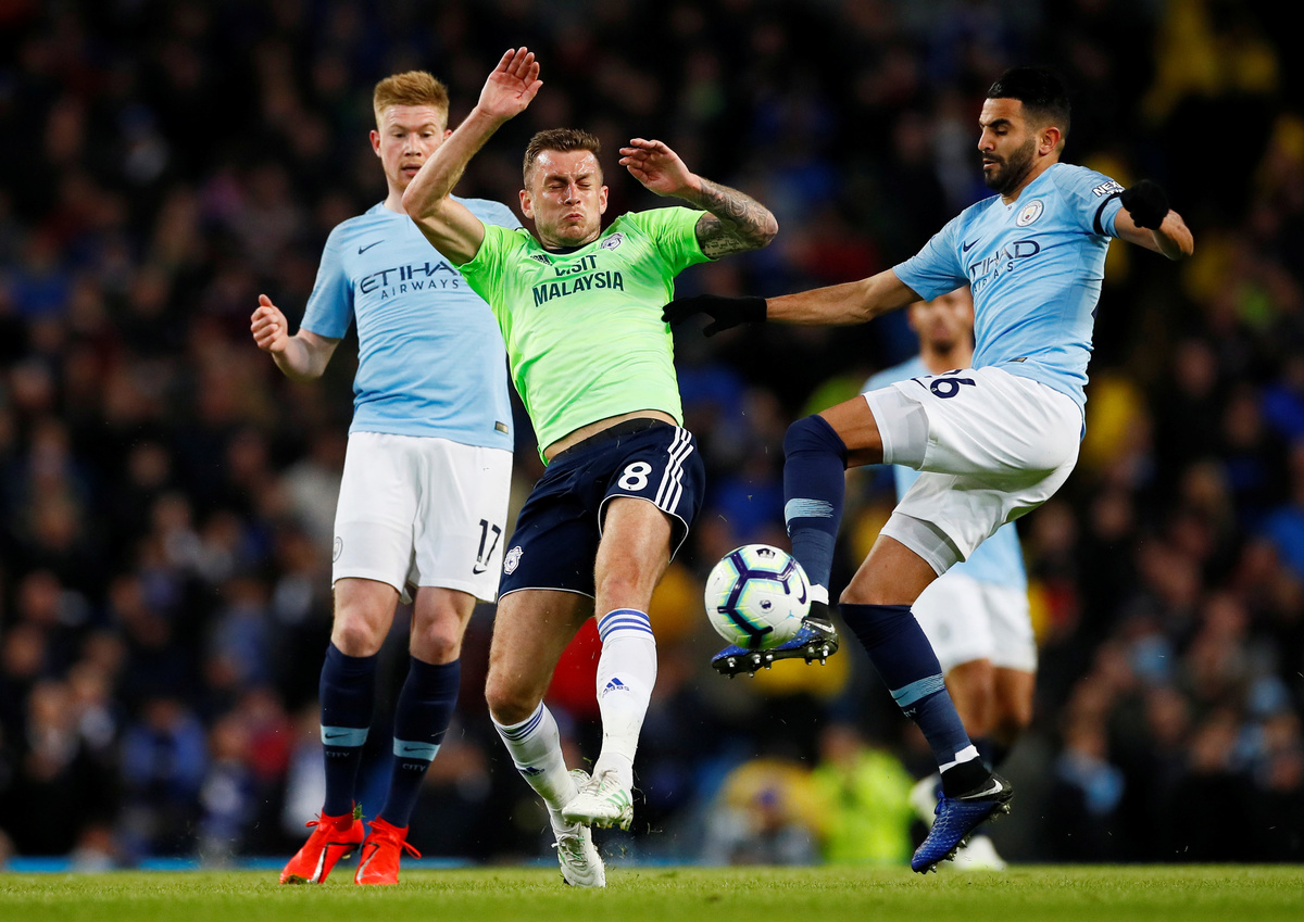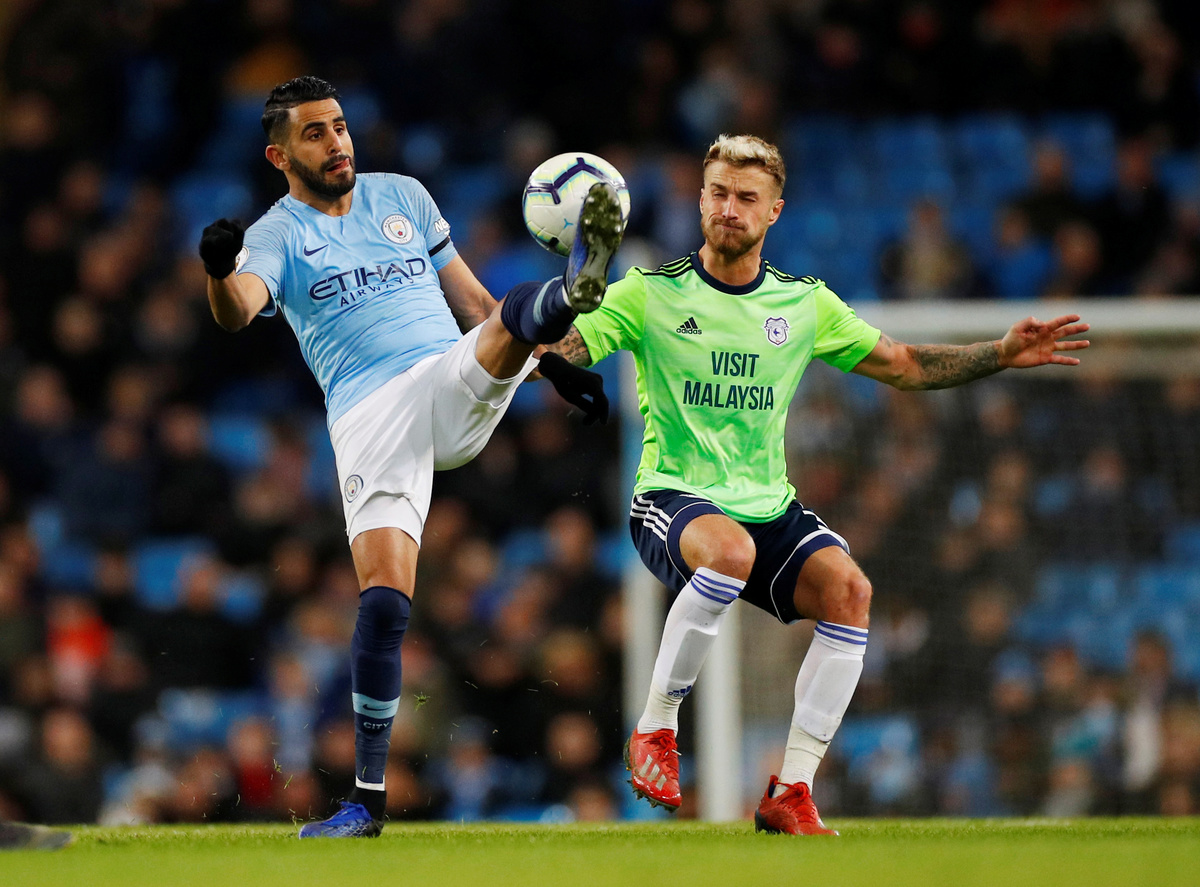 City dominated from the outset, taking the lead in the sixth minute when Kevin De Bruyne ran on to a clever pass from Aymeric Laporte and blasted past Cardiff keeper Neil Etheridge from a tight angle.