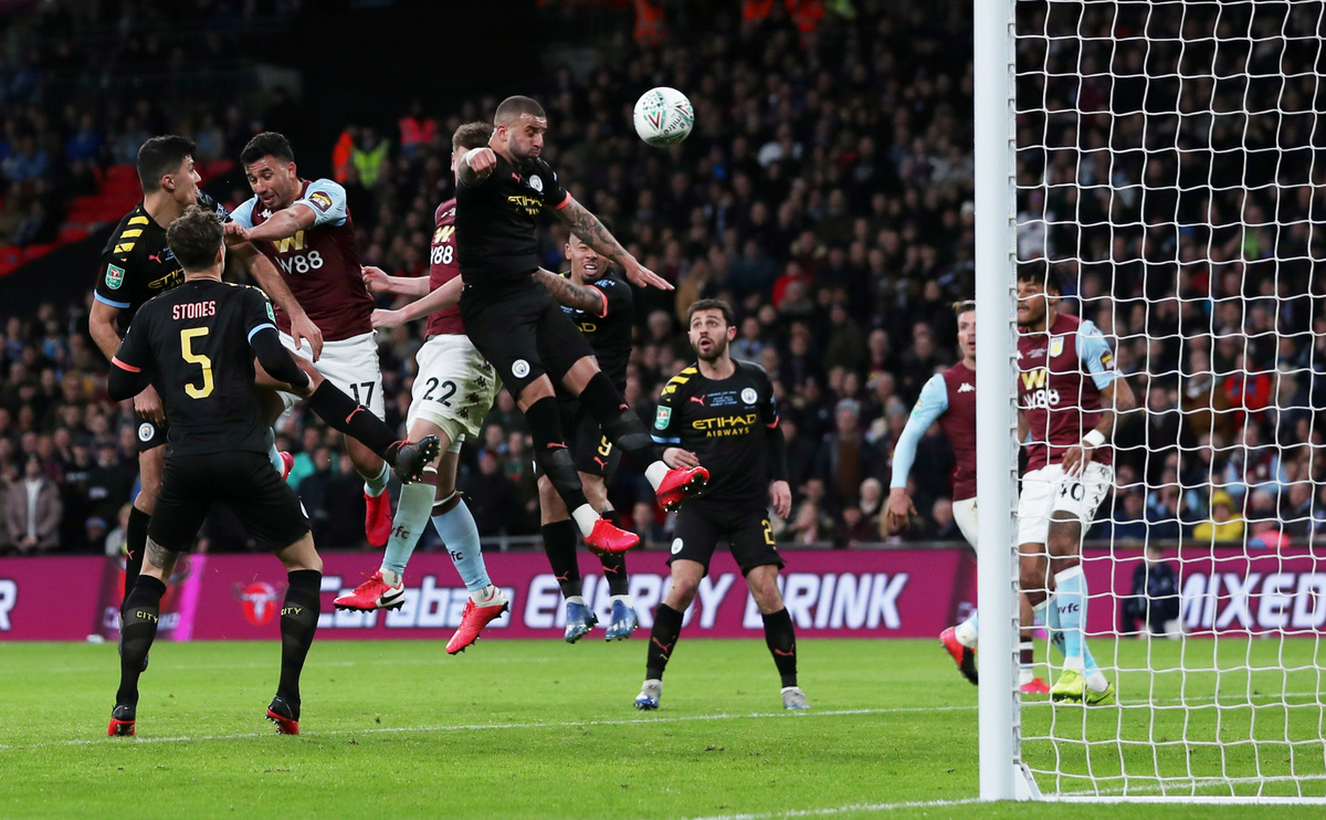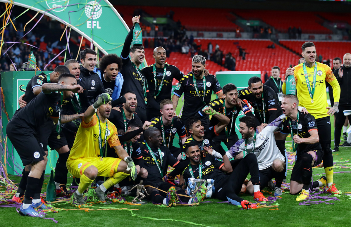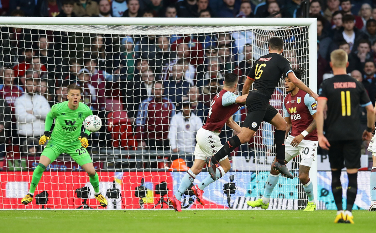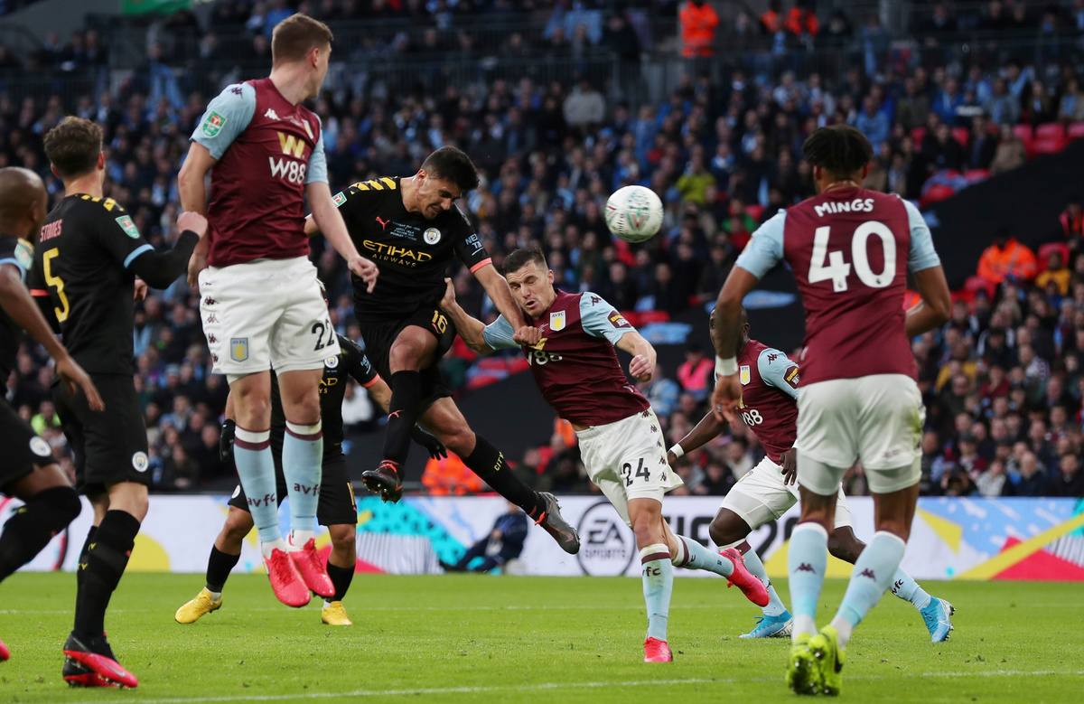 Manchester City continued their imperious stranglehold over the League Cup with a 2-1 victory over Aston Villa in the final on Sunday as goals from Sergio Aguero and Rodri secured the trophy for a third straight season.