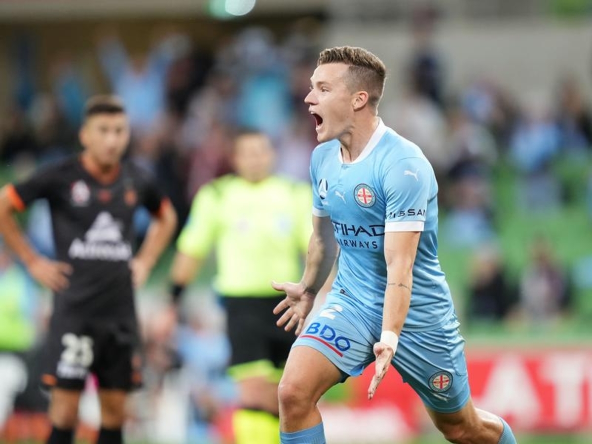 City striker Jamie Maclaren had a goal correctly ruled out for a handball in the 27th and, less than a minute later, Brisbane's Joey Champness cut inside and caressed a long-range shot past an outstretched Tom Glover, off the post and into the net.