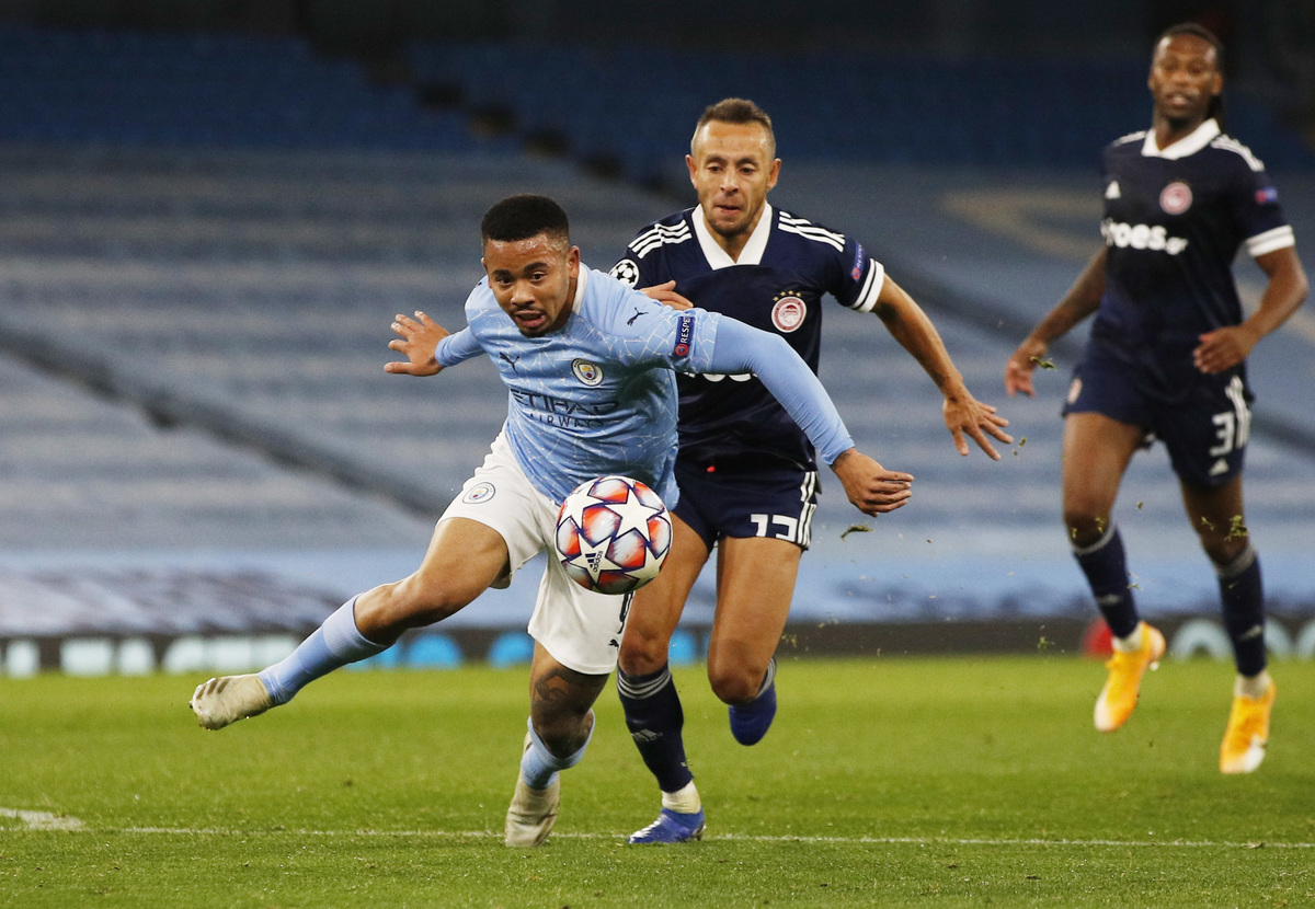 While Olympiakos rarely threatened, City needed another goal to ease their nerves and it came from substitute Gabriel Jesus in the 81st minute, the Brazilian hammering a shot in from close range at the near post after being slipped in by De Bruyne.