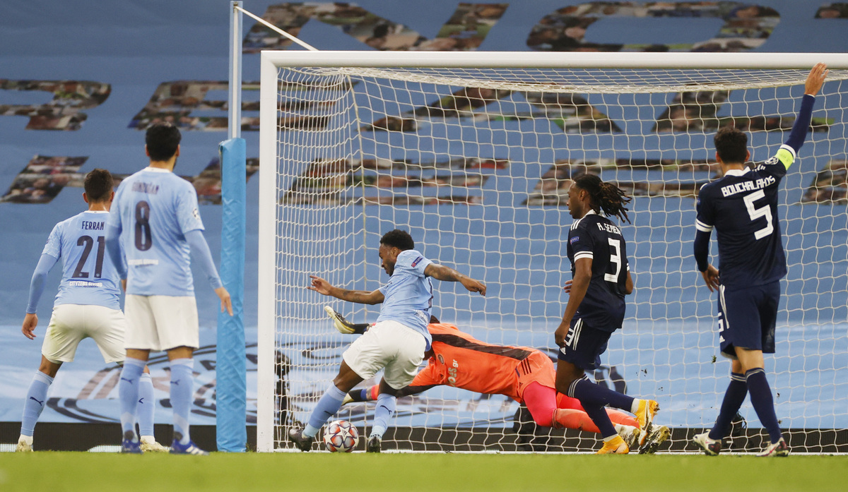 Raheem Sterling had the ball in the net in the 32nd minute, but his effort was ruled out for offside, as City dominated play. But the Greek side grew into the game after the break.