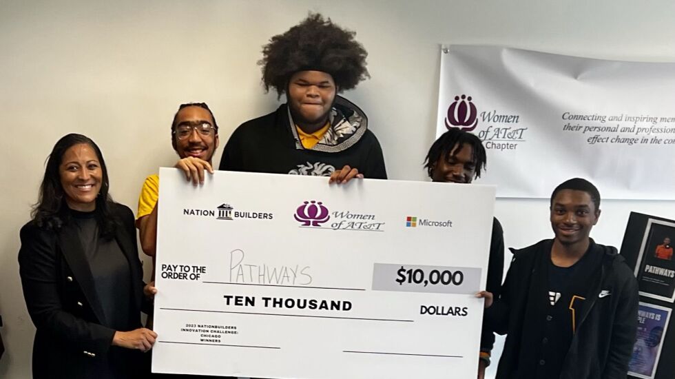 Four of the honorees — Jaylen Lee, Leroy Moore, Antonio Carter and Deshawn Threadgill — are Chicago Vocational Career Academy seniors. They are developing an app to help students fine-tune their college and career search.
