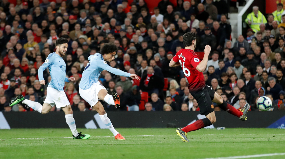 Soccer Football - Premier League - Manchester United v Manchester City - Old Trafford, Manchester, Britain - April 24, 2019 Manchester City's Leroy Sane scores their second goal. Action Images via Reuters/Carl Recine