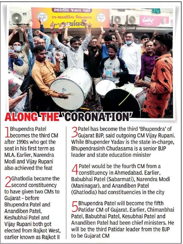 AHMEDABAD: He is fondly called ‘Dada’ by his peers and residents of Ghatlodia and Memnagar. In the seven years between 2010 and 2017 — five years as standing committee chairman Ahmedabad Municipal Corporation and two years as AUDA chairman — Bhupendra Patel came to be known for his ability to pacify standoffs between the bureaucracy and the civic body’s elected wing.