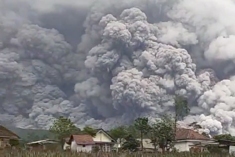 12:31 , Maryam Zakir-HussainMount Semeru in East Java province unleashed avalanches of searing clouds of hot ash and a mixture of rock, lava and gas that traveled up to 7 kilometers (4.3 miles) down its slopes several times since midday to dusk, while a column of hot clouds rose 2 kilometers (1.2 miles) into the air, Indonesia's Geology Agency said in a statement.