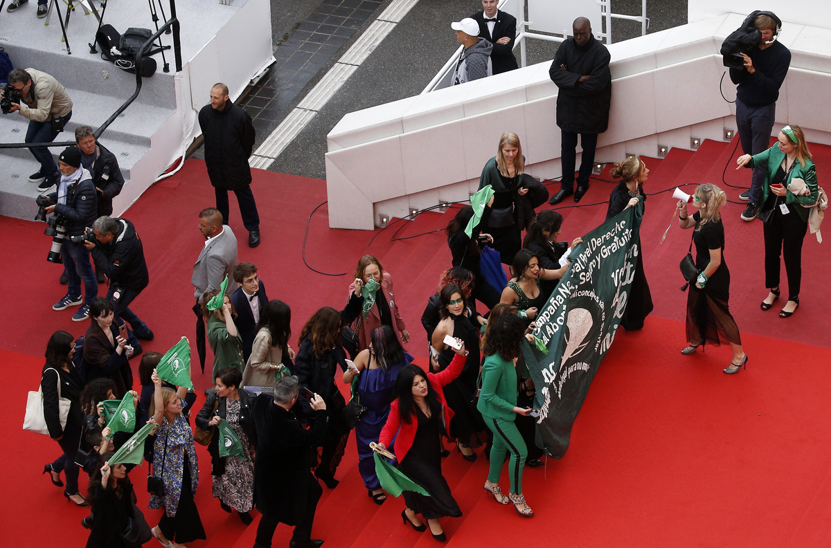 72nd Cannes Film Festival - Screening of the documentary film "Que Sea Ley" (Let it be law) presented as part of special screenings - Cannes, France, May 18, 2019. Protesters demonstrate against the rejection of the law legalizing abortion in Argentina. REUTERS/Stephane Mahe72nd Cannes Film Festival - Screening of the documentary film "Que Sea Ley" (Let it be law) presented as part of special screenings - Cannes, France, May 18, 2019. Protesters demonstrate against the rejection of the law legalizing abortion in Argentina. REUTERS/Eric Gaillard72nd Cannes Film Festival - Screening of the documentary film "Que Sea Ley" (Let it be law) presented as part of special screenings - Cannes, France, May 18, 2019. Protesters demonstrate against the rejection of the law legalizing abortion in Argentina. REUTERS/Eric Gaillard72nd Cannes Film Festival - Screening of the documentary film "Que Sea Ley" (Let it be law) presented as part of special screenings - Cannes, France, May 18, 2019. Protesters demonstrate against the rejection of the law legalizing abortion in Argentina. REUTERS/Eric Gaillard