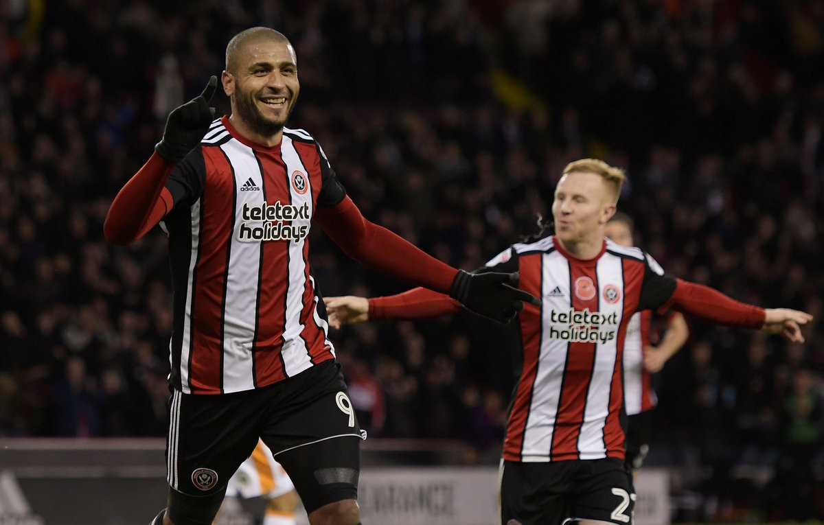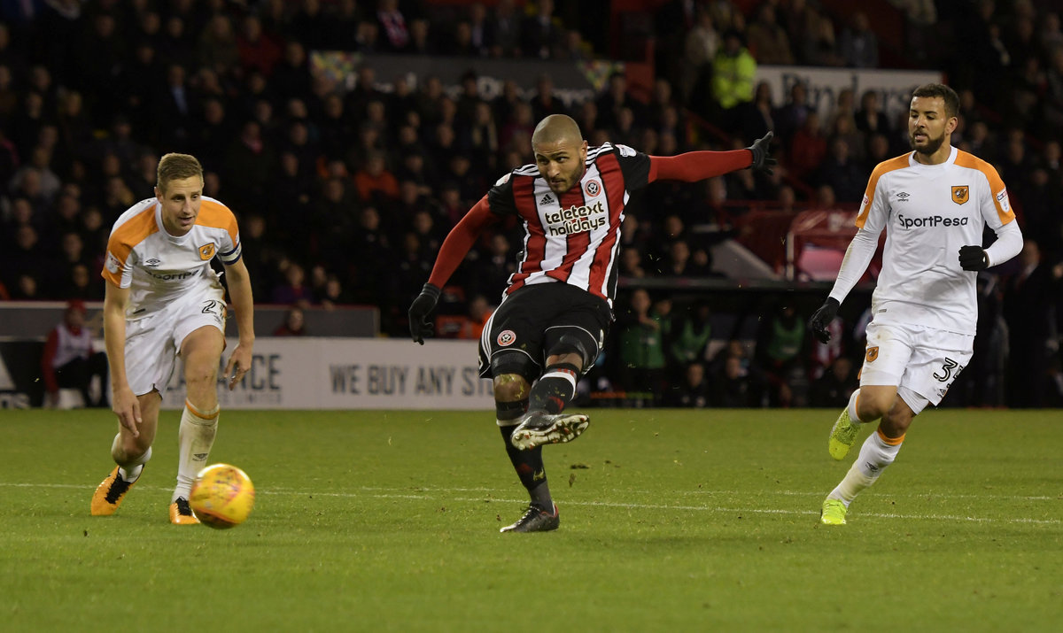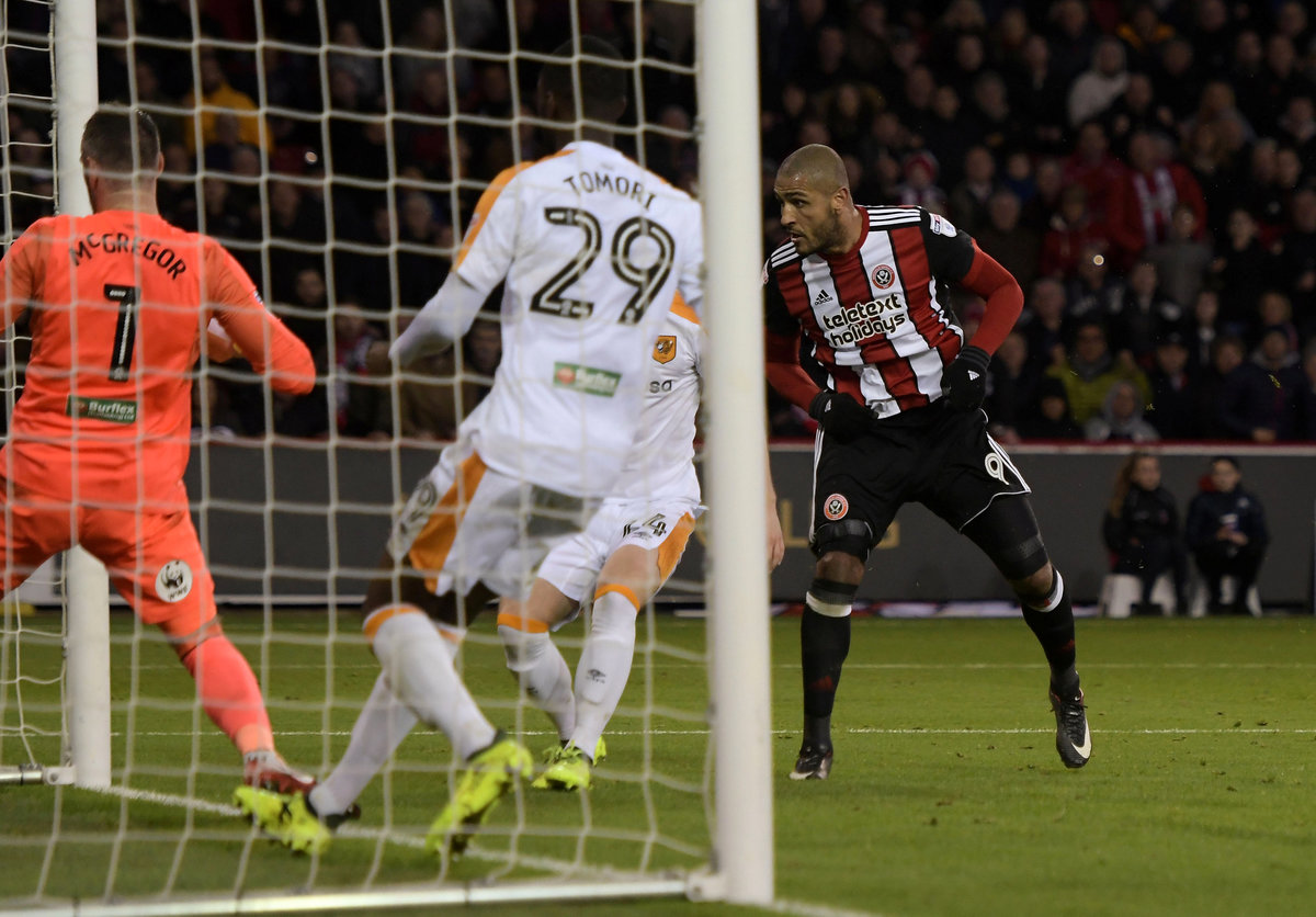 Soccer Football - Championship - Sheffield United vs Hull City - Bramall Lane, Sheffield, Britain - November 4, 2017 Sheffield United's Leon Clarke scores their second goal Action Images/Paul Burrows