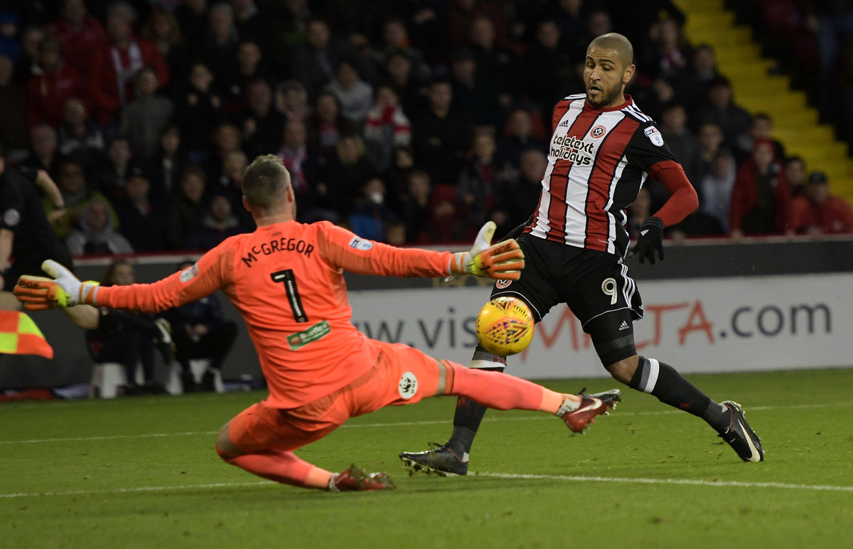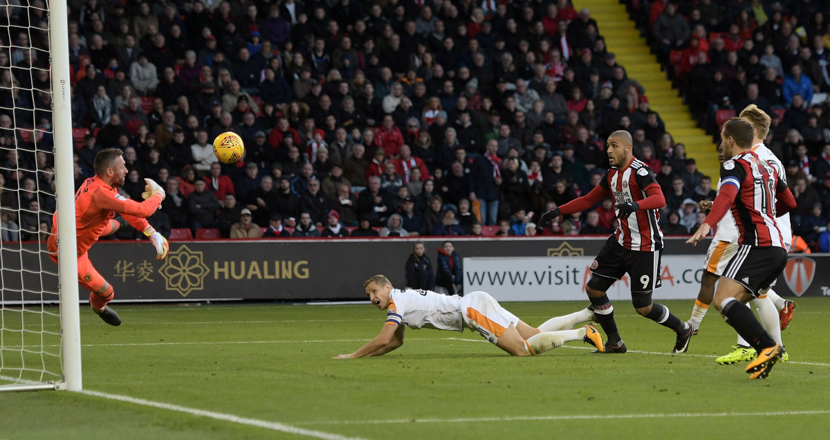 Soccer Football - Championship - Sheffield United vs Hull City - Bramall Lane, Sheffield, Britain - November 4, 2017 Sheffield United's Leon Clarke scores their fourth goal Action Images/Paul Burrows