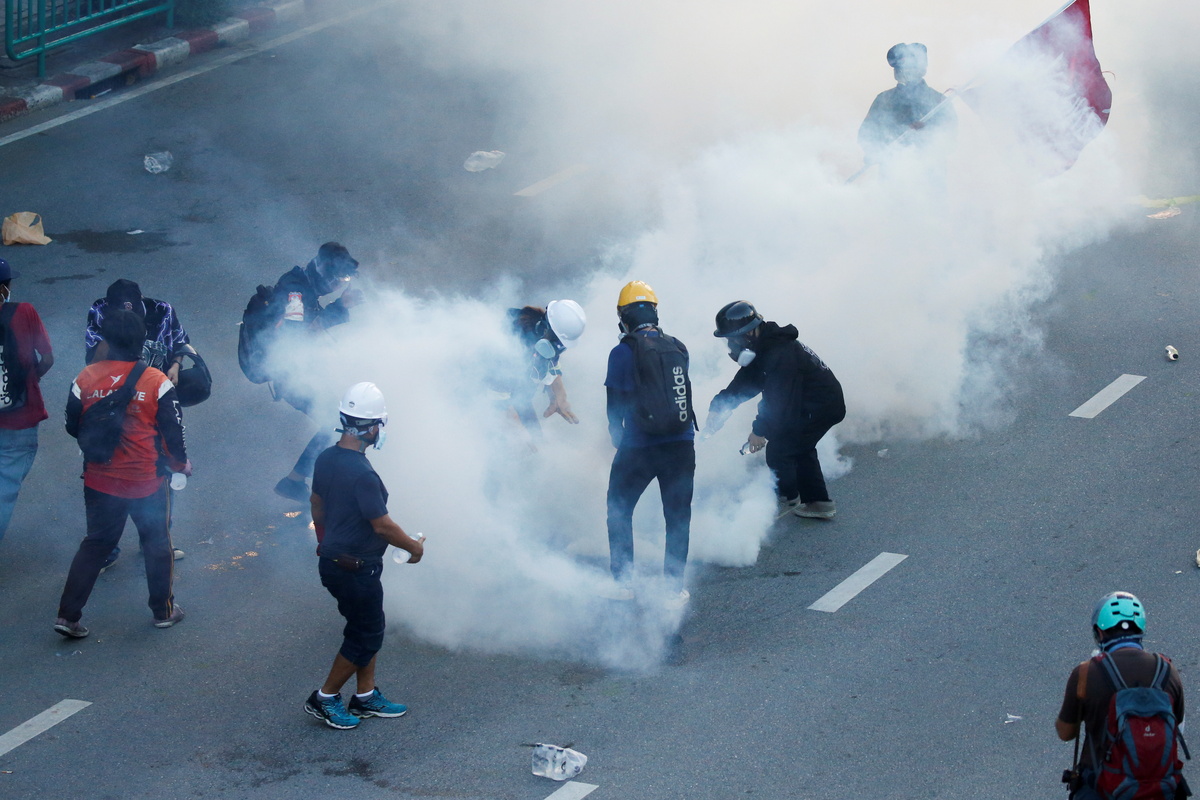 Thai police used water cannon and tear gas to disperse protesters near the office of Prime Minister Prayuth Chan-ocha on Monday, as opposition parties moved to censure him in parliament over his handling of a COVID-19 crisis.