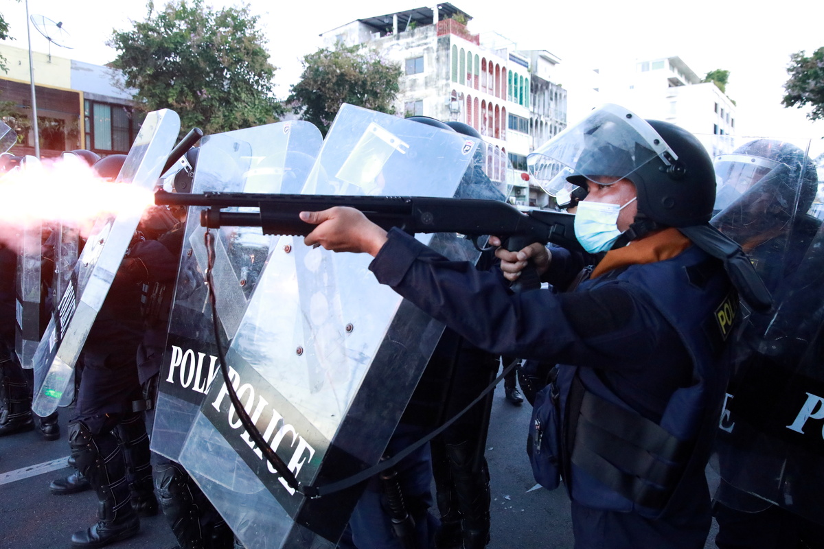 Police fired tear gas cannisters and used water cannon when protesters tried to dismantle a police barricade on Monday, the latest as in a series of recent demonstrations that led to violence, including the use of rubber bullets to disperse protests