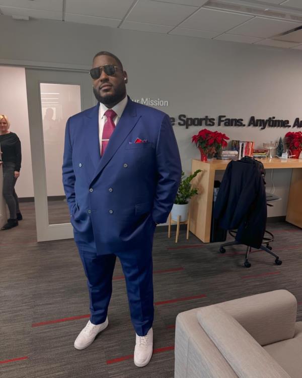 Damien M. Woody, the former football offensive lineman and ESPN analyst, is making headlines for his effortless blend of class and charisma. Showcasing his style outside the field, the award-winning sports personality recently stepped out in a royal blue suit, making a bold statement with his fashion choice.