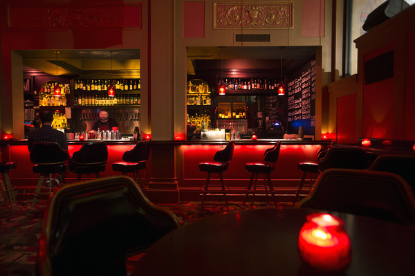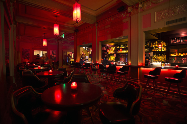 One need not buy a ticket to get a look at the lobby of the New Mission, which sits on Mission Street between 21st and 22nd streets, to get a load of that lobby, or to enjoy a craftier-than-usual craft cocktail at Bear vs. Bull, a dark-as-midnight-at-noon bar that sits off to the side of it. Isaac Shumway, formerly of Tosca Cafe, heads up the bar crew.