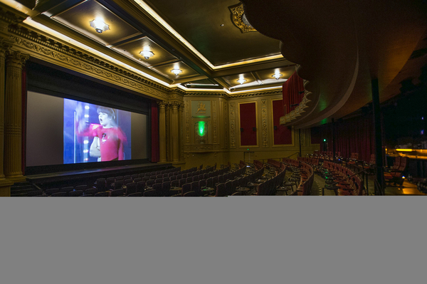 A 45-foot-wide screen shows super-bright SRX-R515DX digital projection in a room whose century-old, gold-leaf design flourishes register just as clearly. There's also a 35-millimeter projector, for the New Mission's many screenings of archival films.