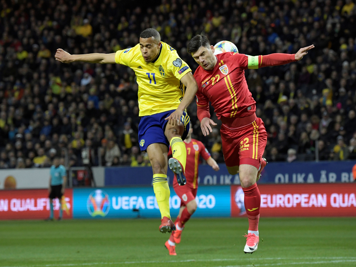 Soccer Football - Euro 2020 Qualifier - Group F - Sweden v Romania - Friends Arena, Stockholm, Sweden - March 23, 2019 Sweden's Emil Forsberg and Romania's Razvan Marin in action. TT News Agency/Christine Olsson/via REUTERS Soccer Football - Euro 2020 Qualifier - Group F - Sweden v Romania - Friends Aren, Stockholm, Sweden - March 23, 2019 Sweden's Robin Quaison and Romania's Cristian Sapunaru in action. TT News Agency/Jaenrik Henriksson/via REUTERS Soccer Football - Euro 2020 Qualifier - Group F - Sweden v Romania - Friends Aren, Stockholm, Sweden - March 23, 2019 Sweden's Marcus Berg and Romania's Dragos Grigore in action. TT News Agency/Jaenrik Henriksson/via REUTERS