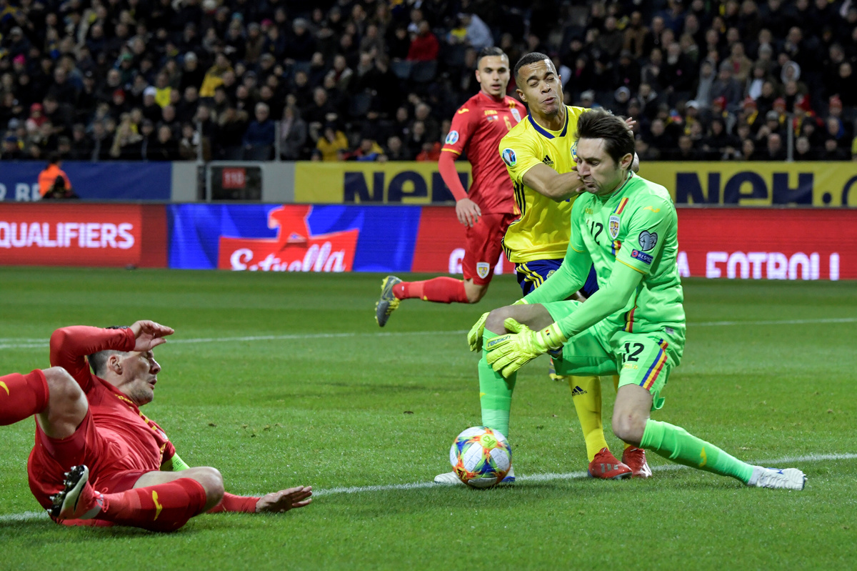 Soccer Football - Euro 2020 Qualifier - Group F - Sweden v Romania - Friends Aren, Stockholm, Sweden - March 23, 2019 Sweden's Robin Quaison and Romania's goalkeeper Ciprian Tatarusanu in action. TT News Agency/Jaenrik Henriksson/via REUTERS