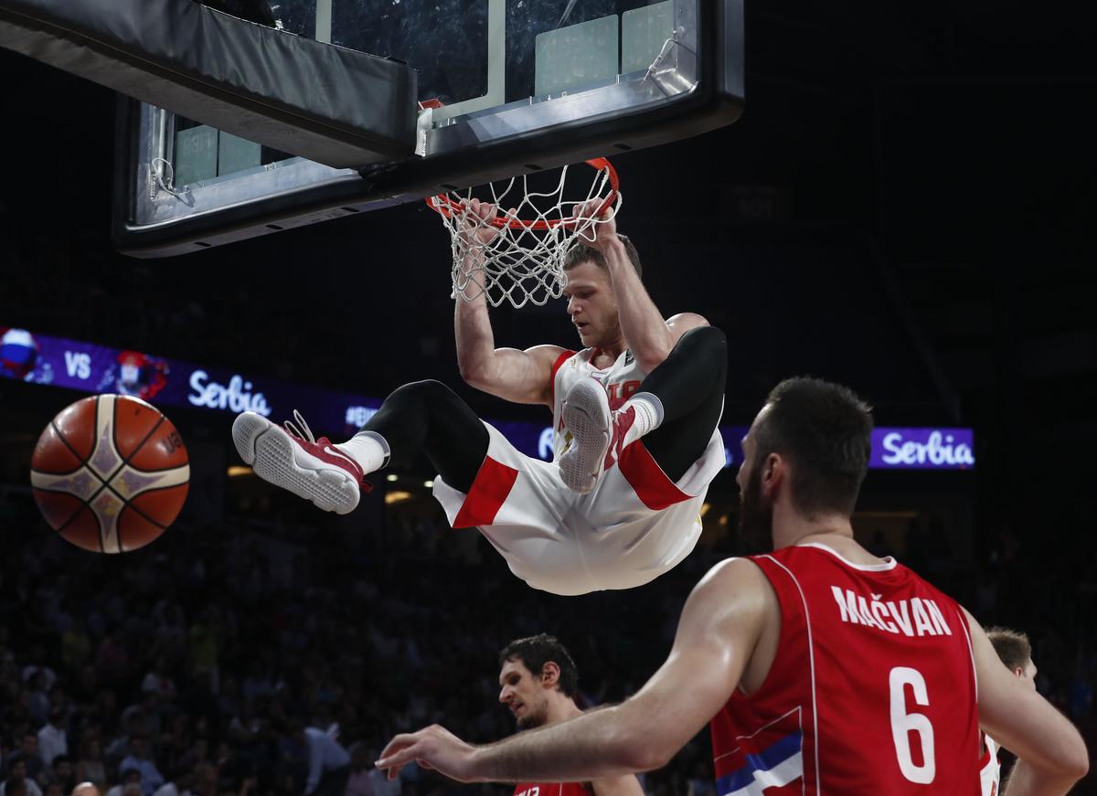Basketball - Russia v Serbia - European Championships EuroBasket 2017 Semi-Final - Istanbul, Turkey - September 15, 2017 - Timofey Mozgov of Russia and Boban Marjanovic of Serbia in action. REUTERS/Osman OrsalBasketball - Russia v Serbia - European Championships EuroBasket 2017 Semi-Final - Istanbul, Turkey - September 15, 2017 - Aleksei Shved of Russia reacts. REUTERS/Murad SezerBasketball - Russia v Serbia - European Championships EuroBasket 2017 Semi-Final - Istanbul, Turkey - September 15, 2017 - Coach Aleksandar Sasha Djordjevic of Serbia greets supporters. REUTERS/Osman OrsalBasketball - Russia v Serbia - European Championships EuroBasket 2017 Semi-Final - Istanbul, Turkey - September 15, 2017 - Vitaly Fridzon of Russia and Vladimir Lucic of Serbia in action. REUTERS/Osman OrsalBasketball - Russia v Serbia - European Championships EuroBasket 2017 Semi-Final - Istanbul, Turkey - September 15, 2017 - Andrey Zubkov of Russia slam dunks. REUTERS/Murad SezerBasketball - Russia v Serbia - European Championships EuroBasket 2017 Semi-Final - Istanbul, Turkey - September 15, 2017 - Vasilije Micic and Dragan Milosavljevic of Serbia celebrate. REUTERS/Osman OrsalBasketball - Russia v Serbia - European Championships EuroBasket 2017 Semi-Final - Istanbul, Turkey - September 15, 2017 - Players of Serbia celebrate. REUTERS/Osman OrsalBasketball - Russia v Serbia - European Championships EuroBasket 2017 Semi-Final - Istanbul, Turkey - September 15, 2017 - Vladimir Lucic of Serbia celebrates. REUTERS/Murad SezerBasketball - Russia v Serbia - European Championships EuroBasket 2017 Semi-Final - Istanbul, Turkey - September 15, 2017 - Players of Serbia react. REUTERS/Osman OrsalBasketball - Russia v Serbia - European Championships EuroBasket 2017 Semi-Final - Istanbul, Turkey - September 15, 2017 - Coach Aleksandar Sasha Djordjevic of Serbia reacts. REUTERS/Osman OrsalBasketball - Russia v Serbia - European Championships EuroBasket 2017 Semi-Final - Istanbul, Turkey - September 15, 2017 - Timofey Mozgov of Russia and Bogdan Bogdanovic and Boban Marjanovic of Serbia in action. REUTERS/Murad Sezer