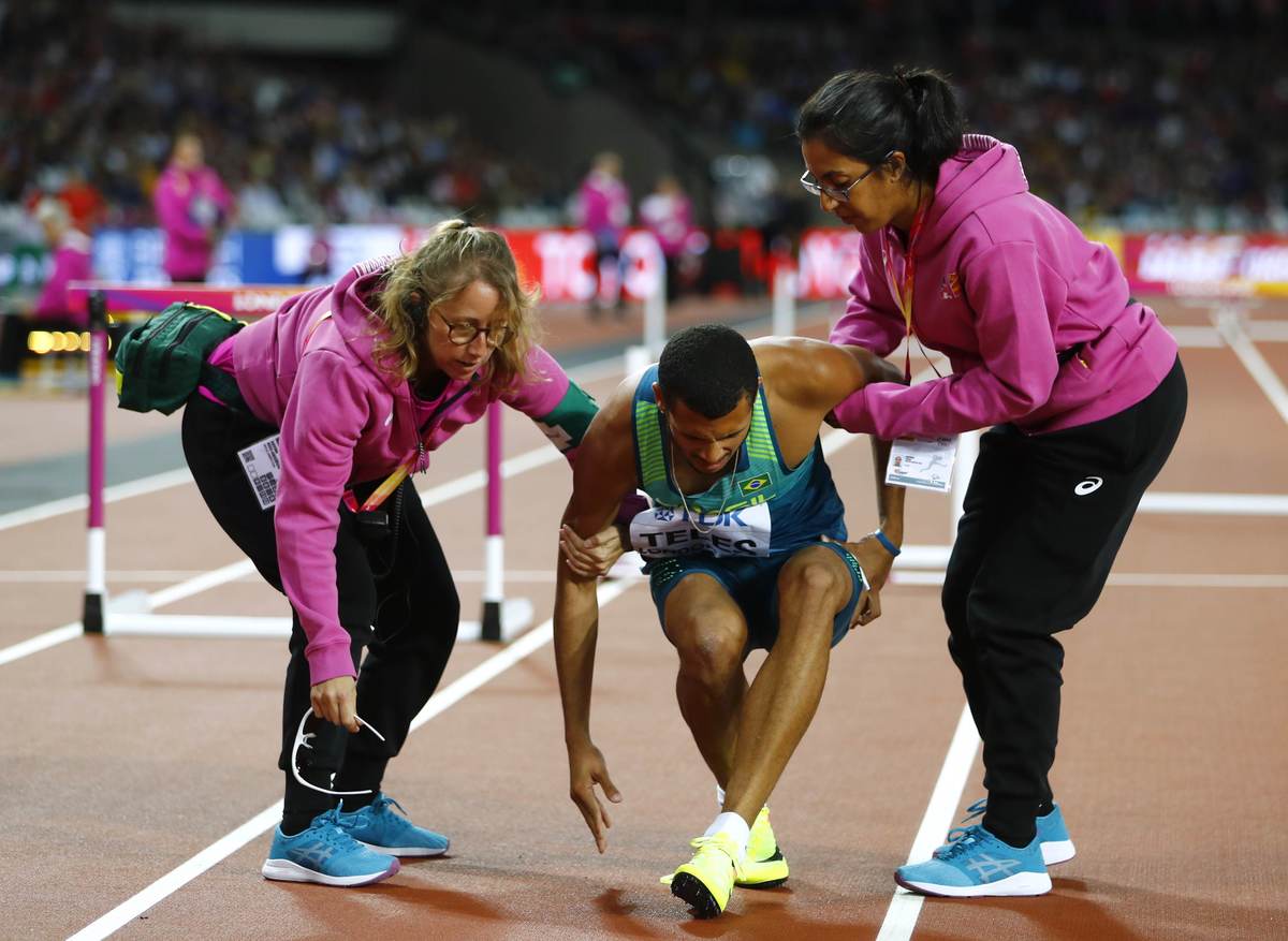 Yet he actually timed his run in lane seven with considerable precision to reel in the field, headed by the second automatic qualifier, powerful young Norwegian hope Karsten Warholm, in what was to prove by far the fastest heat.