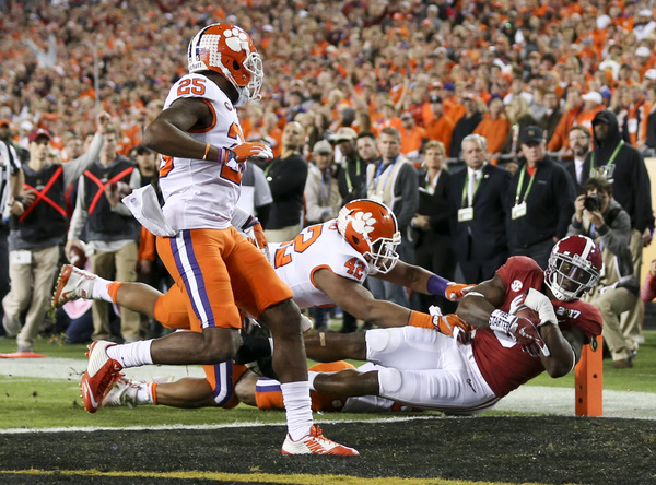 The game-winning drive started at the Alabama 12 with 6:33 remaining. A 26-yard leaping catch by Mike Williams with an unsportsmanlike-conduct penalty tacked on put the Tigers at the 16.