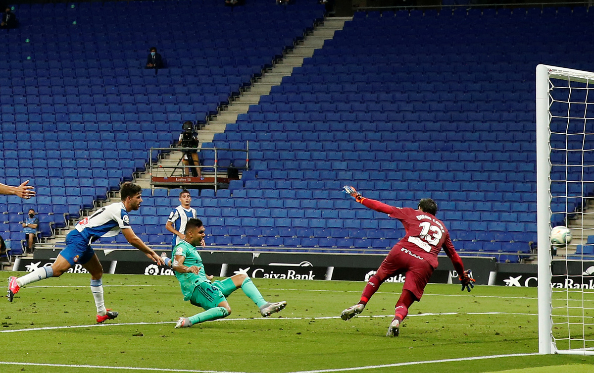 Casemiro was Real's most dangerous player and nearly opened the scoring early on with a wild shot from his own half which forced Espanyol goalkeeper Diego Lopez to scramble back towards his line and push the ball away.