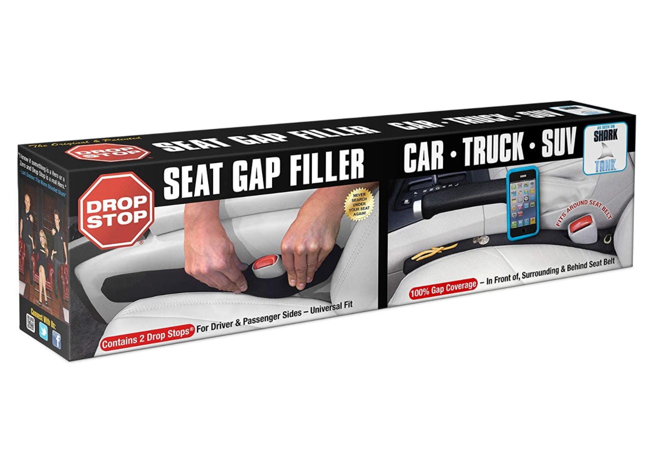 Tired of your loose items falling between the seats in your car? If so, just stuff this cushion in that gap. It's designed to fit around your seatbelt, and each order comes with two so that you can add one near your driver and passenger seat.