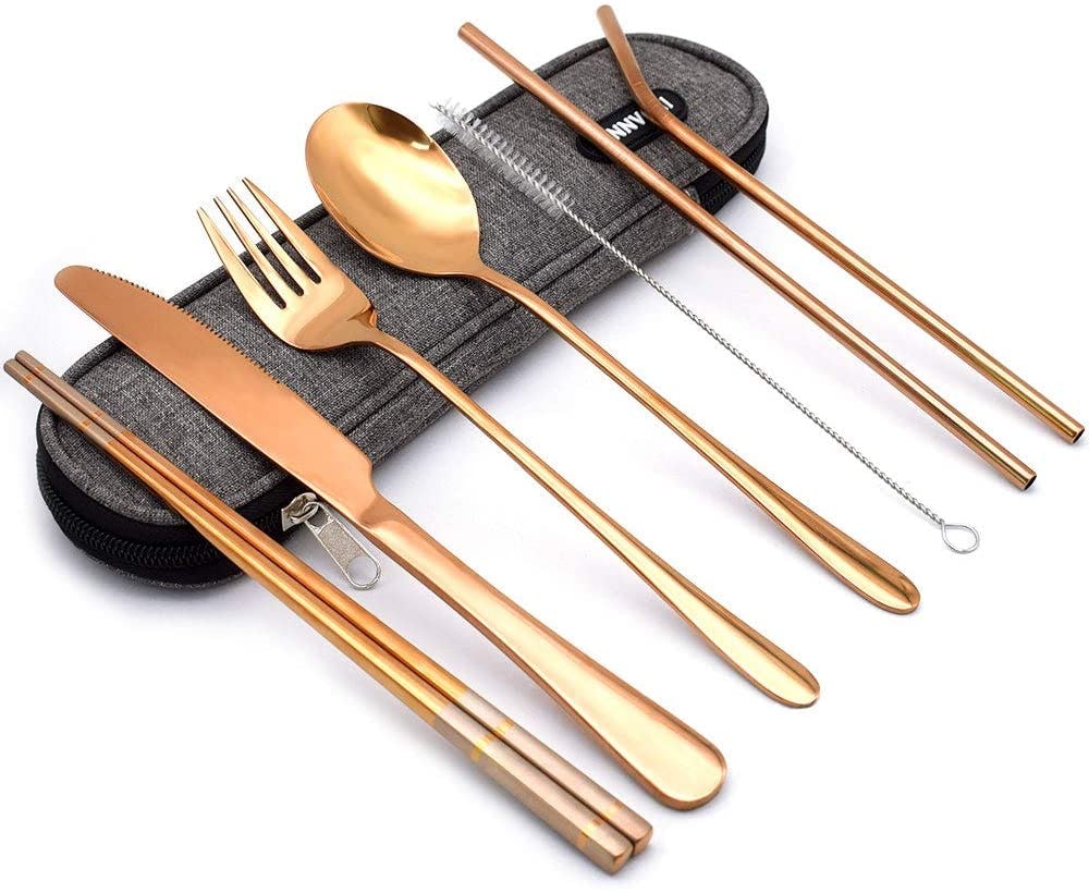 Plastic utensils are wasteful, so why not start using this reusable set that's made with stainless steel? Each order comes with a travel case so you can use them while you're on the go. Plus, you also get a cleaning brush for the insides of the reusable straws. Choose from six colors, including rose gold, purple, blue, and more.