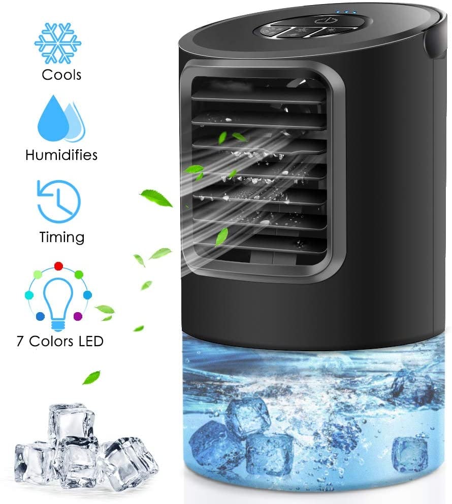 Keep it on your office desk, or even add this compact air conditioner to your nightstand to help you keep cool while you sleep. The built-in handle makes it easy to transport around your home, and it runs at an ultra-quiet level so you won't disturb anyone around you.