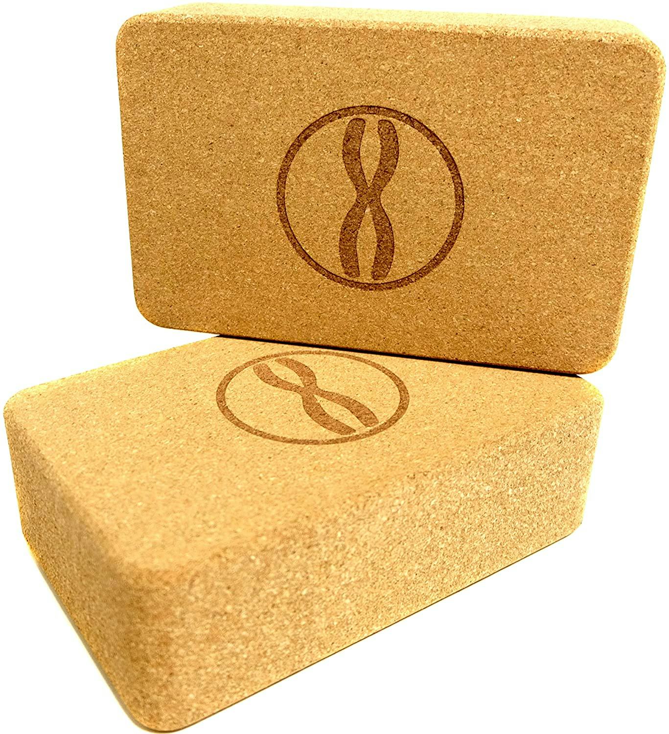 44. A pair of yoga blocks made from odor-free cork
