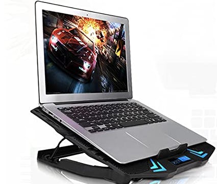 This clever laptop stand is designed to help keep your machine cool and prop it up to the optimal angle. It has four outer fans and one inner fan to help keep air circulating, and you can control them with a small LCD screen. On top of that, it's adjustable to five different heights.