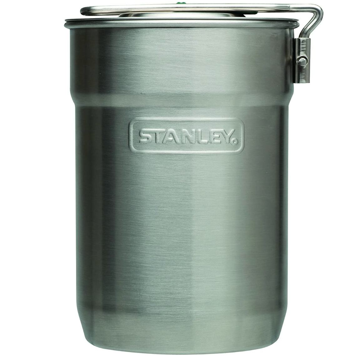 This is the cook set you want to add to your camping rig. The little portable stainless steel pan has a foldable handle that keeps two insulated mugs and the vented lid tucked safely inside when it is packed away. But they unpack easily when you want to stop for a hot beverage or snack.
