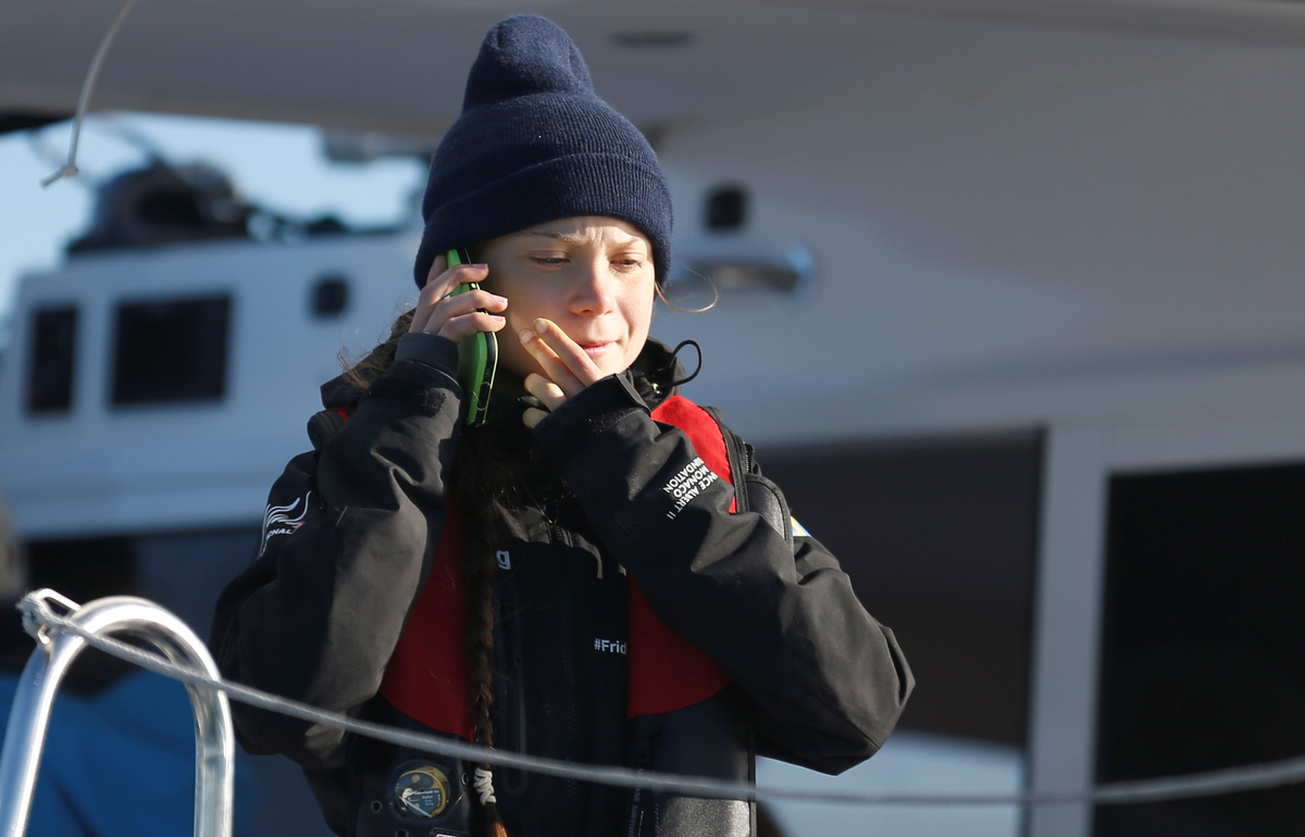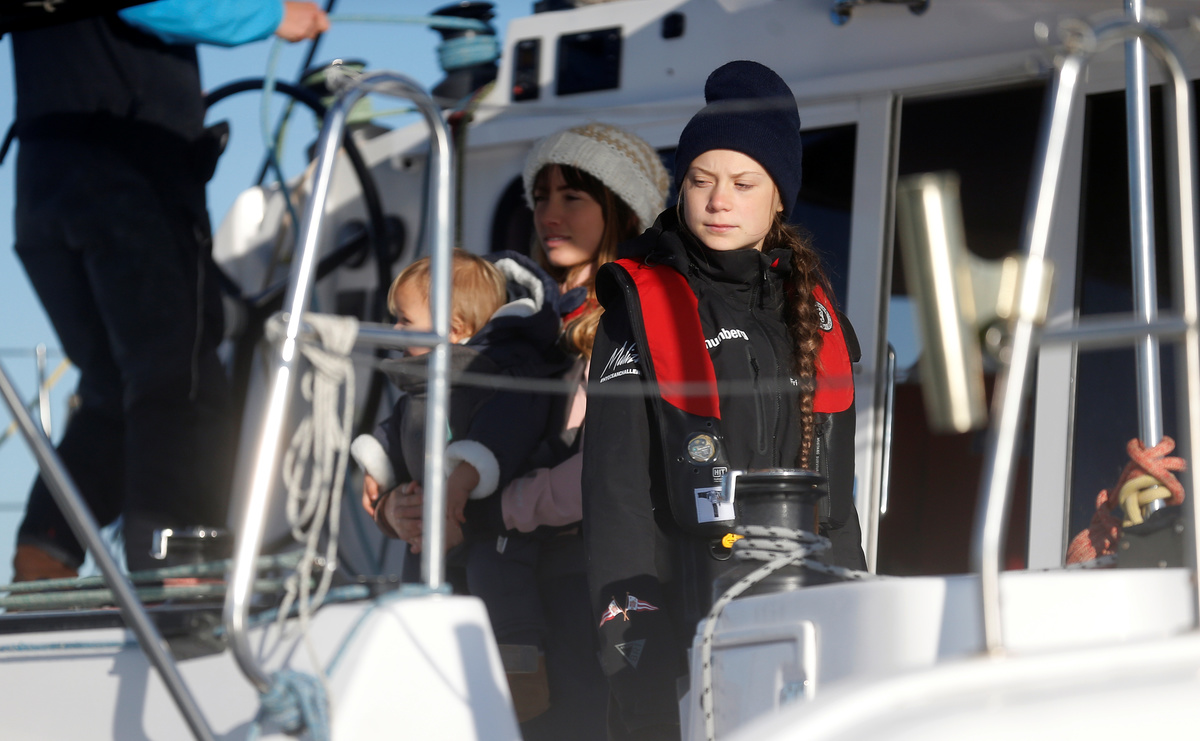 LISBON/MADRID (Reuters) - Teen activist Greta Thunberg reached Europe on Tuesday after a 21-day catamaran dash across the Atlantic for a United Nations summit where she will invoke the fury of global youth at politicians' foot-dragging over climate change.