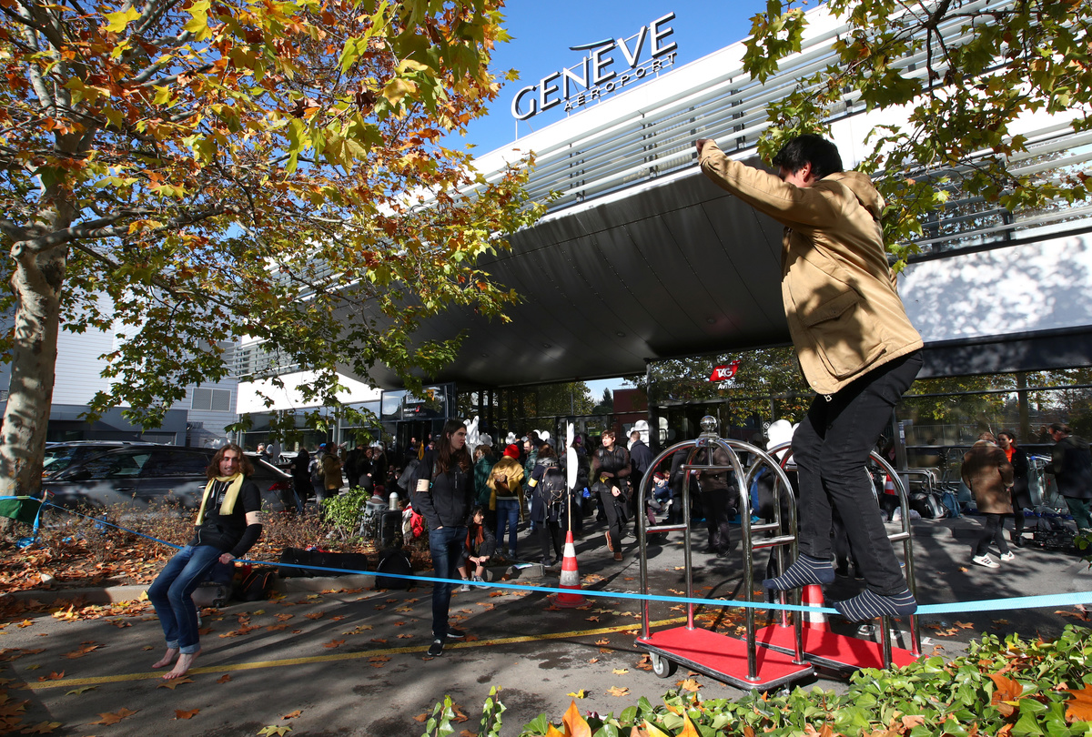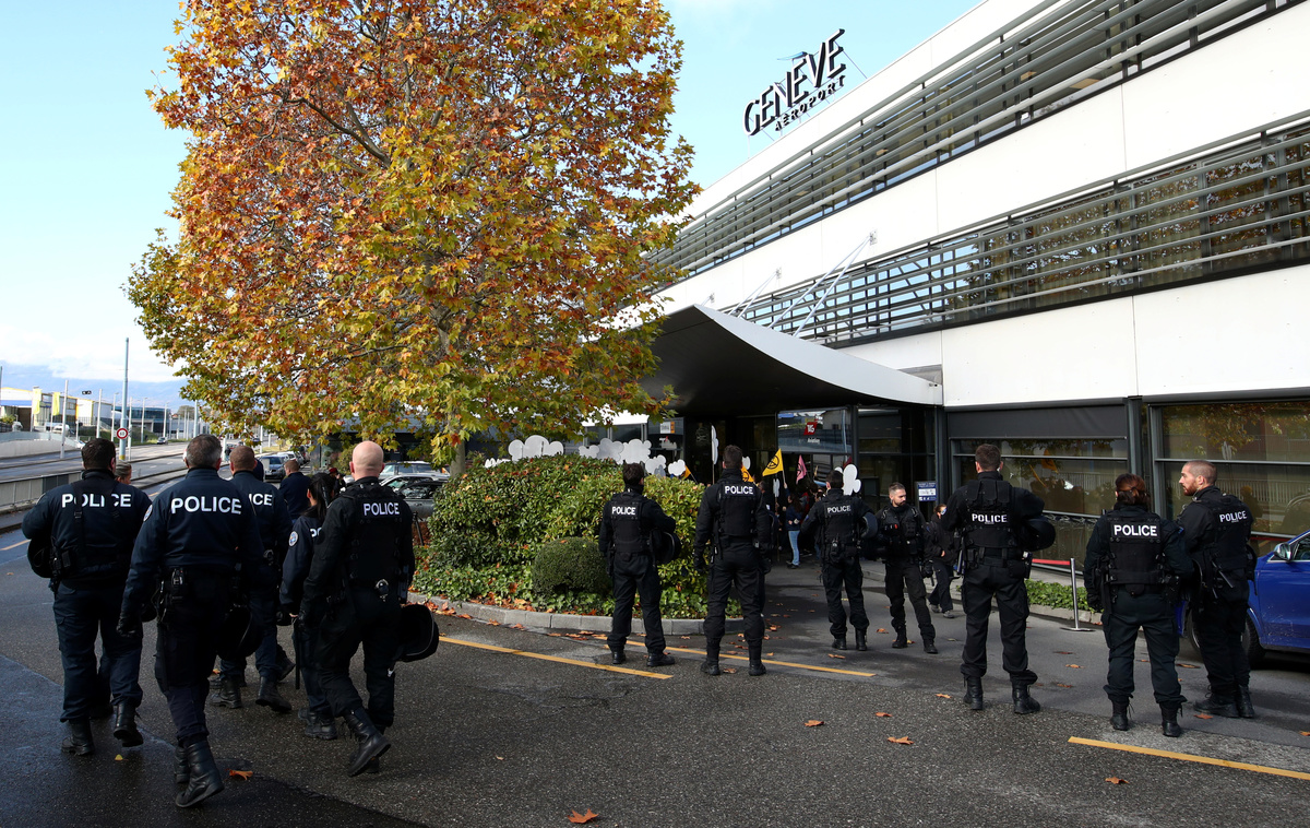 GENEVA (Reuters) - Climate-change activists blocked Geneva airport's private jet terminal on Saturday in protest against what they said is an absurd form of transport.