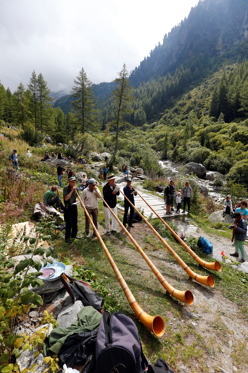 More than 200 people gathered at the foot of the Trient glacier, situated along one of Western Europe's tallest mountain ranges, the Mont Blanc massif, to call attention to the impact of climate change on Switzerland's natural landscape.