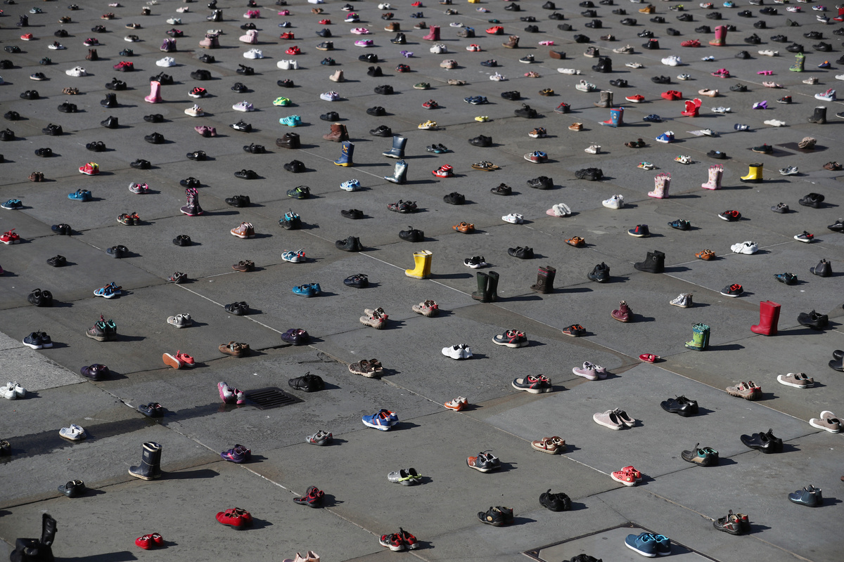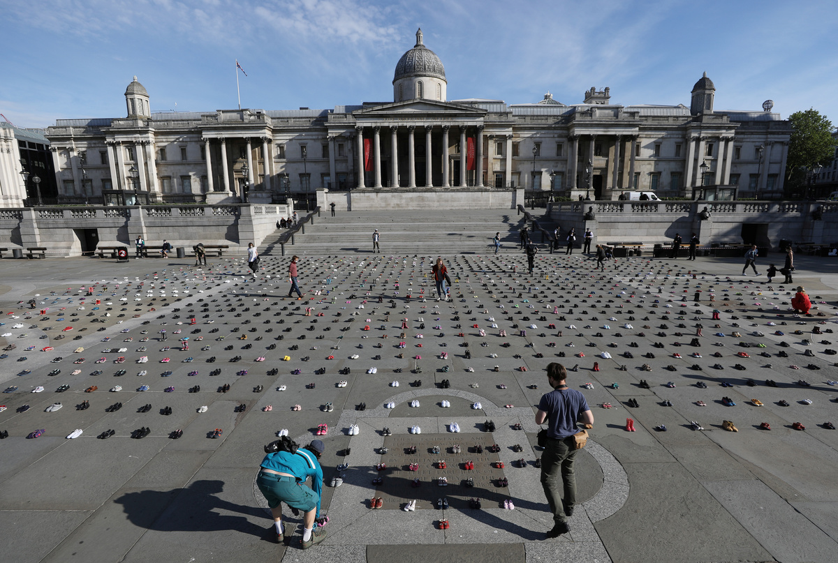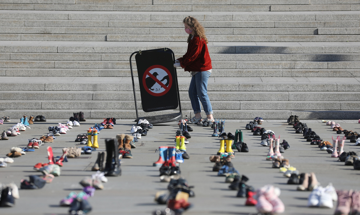 Civil disobedience group Extinction Rebellion lay out 1,500 pairs of children's shoes in Trafalgar Square in central London in a protest to demand the government adopts a climate-friendly economic recovery plan, following the outbreak of the coronavirus disease (COVID-19), London, Britain May 18, 2020. REUTERS/Simon DawsonCivil disobedience group Extinction Rebellion lay out 1,500 pairs of children's shoes in Trafalgar Square in central London in a protest to demand the government adopts a climate-friendly economic recovery plan, following the outbreak of the coronavirus disease (COVID-19), London, Britain May 18, 2020. REUTERS/Simon DawsonCivil disobedience group Extinction Rebellion lay out 1,500 pairs of children's shoes in Trafalgar Square in central London in a protest to demand the government adopts a climate-friendly economic recovery plan, following the outbreak of the coronavirus disease (COVID-19), London, Britain May 18, 2020. REUTERS/Simon DawsonCivil disobedience group Extinction Rebellion lay out 1,500 pairs of children's shoes in Trafalgar Square in central London in a protest to demand the government adopts a climate-friendly economic recovery plan, following the outbreak of the coronavirus disease (COVID-19), London, Britain May 18, 2020. REUTERS/Simon Dawson