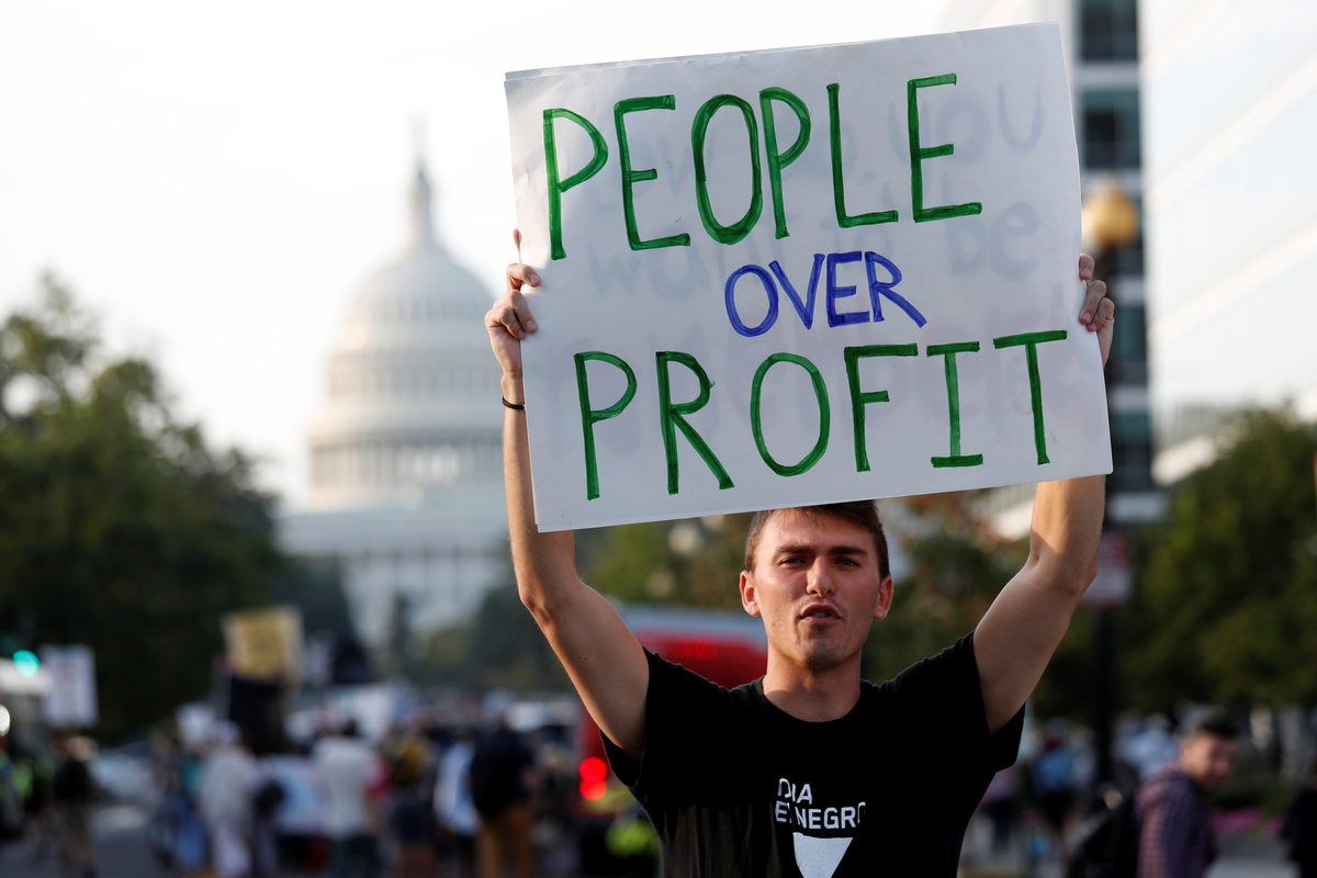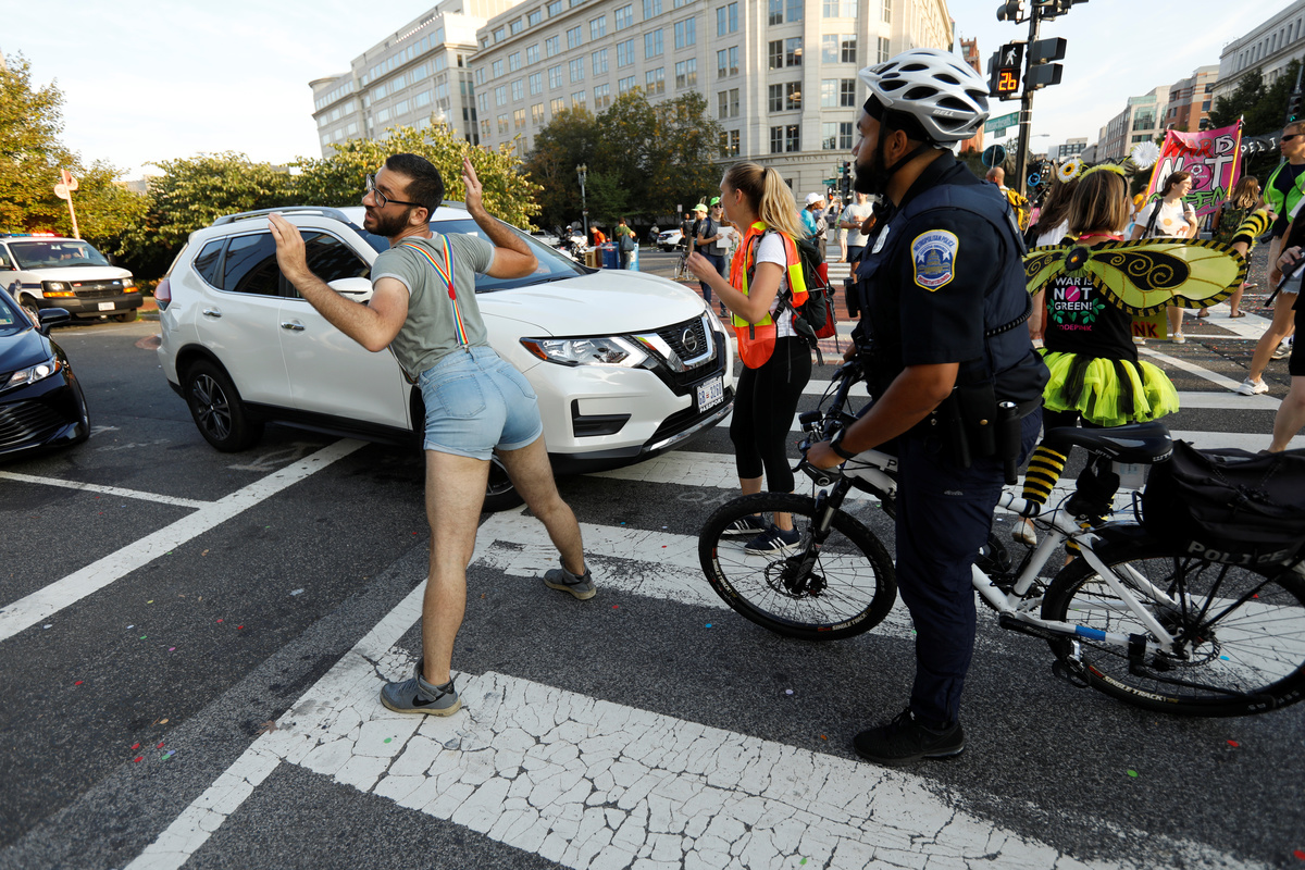 Climate change activists disrupt early morning rush hour traffic, blocking off the intersection of 12th Street and Independence Avenue in Southwest Washington, as protestors block key buildings and roads to stop "business-as-usual" in the U.S. capital to demand action by U.S. politicians on tackling climate change in Washington, U.S., September 23, 2019. REUTERS/Michael A. McCoyClimate change activists march through police tape in Washington, U.S. September 23, 2019. REUTERS/Erin ScottProtesters disrupt early morning rush hour traffic, blocking off the intersection of 12th Street and C Street in Southwest Washington causing a two hour traffic delay, as protestors block key buildings and roads in Washington D.C. to stop "business-as-usual" in the U.S. capital and demand action by U.S. politicians on tackling climate change in Washington, U.S., September 23, 2019. REUTERS/Michael A. McCoyClimate change activists march down Connecticut Avenue in Washington, U.S. September 23, 2019. REUTERS/Erin ScottA climate change activist lies atop a van blocking a road in Southwest Washington in front of the Bureau of Engraving and Printing where U.S. currency is printed as demonstrators block key buildings and roads to stop "business-as-usual" in the U.S. capital and demand action by U.S. politicians on tackling climate change in Washington, U.S., September 23, 2019. REUTERS/Michael A. McCoyWashington Metropolitan Police Department officers deal with climate change activists who disabled their car and locked themselves to it in the middle of an intersection to block early morning rush hour traffic in Southwest Washington, as demonstrators block key buildings and roads to stop "business-as-usual" in the U.S. capital and demand action by U.S. politicians on climate change in Washington, U.S., September 23, 2019. REUTERS/Michael A. McCoyClimate protesters write chalk messages at a blocked intersection in Washington, U.S. September 23, 2019. REUTERS/Erin ScottPolice work to remove protesters from a boat being used to block traffic at an intersection near the White House in Washington, U.S. September 23, 2019. REUTERS/Erin ScottThe activist group Extinction Rebellion flies their flag near the White House during a climate change protest in Washington, U.S. September 23, 2019. REUTERS/Erin ScottA climate change activist chains themself to a ladder while blocking traffic in downtown Washington, U.S. September 23, 2019. REUTERS/Erin ScottClimate change activists block early morning rush hour traffic, standing in the middle of Independence Avenue in Southwest Washington, as demonstrators block key buildings and roads to stop "business-as-usual" in the U.S. capital and demand action by U.S. politicians on climate change in Washington, U.S., September 23, 2019. REUTERS/Michael A. McCoyClimate change activists sit down in front of early morning rush hour traffic, blocking a road in Southwest Washington, as demonstrators block key buildings and roads to stop "business-as-usual" in the U.S. capital and demand action by U.S. politicians on climate change in Washington, U.S., September 23, 2019. REUTERS/Michael A. McCoyEnvironmental activists block traffic as part of protests seeking to pressure U.S. politicians to fight climate change in Washington, U.S., September 23, 2019. REUTERS/Kevin LamarqueEnvironmental activists block traffic as part of protests seeking to pressure U.S. politicians to fight climate change in Washington, U.S., September 23, 2019. REUTERS/Kevin LamarqueClimate change activists block traffic at an intersection near the White House in Washington, U.S. September 23, 2019. REUTERS/Erin ScottEnvironmental activists block traffic as part of "Shut Down DC" protests seeking to pressure U.S. politicians to fight climate change in Washington, U.S., September 23, 2019. REUTERS/Kevin LamarqueEnvironmental activists block traffic as part of protests seeking to pressure U.S. politicians to fight climate change in Washington, U.S., September 23, 2019. REUTERS/Kevin LamarqueClimate change activists block key buildings and roads in the U.S. capital to demand action by U.S. politicians to fight climate change in Washington, U.S., September 23, 2019. REUTERS/Michael A. McCoy
