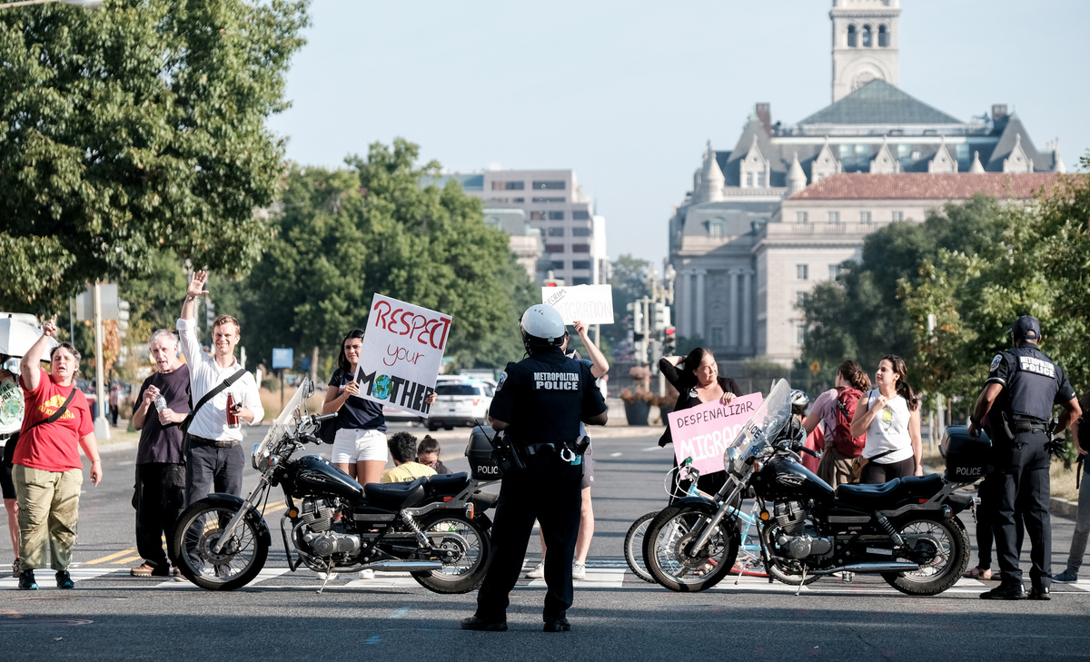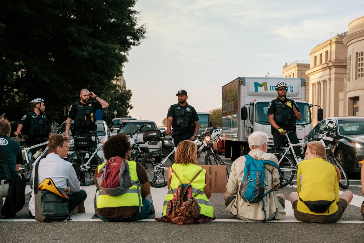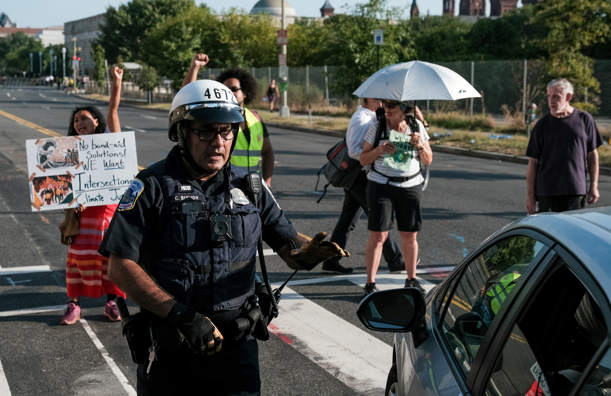 The protest, called Shut Down DC, was backed by about two dozen groups, including the Metro D.C. chapter of the Democratic Socialists of America, Extinction Rebellion D.C. and Black Lives Matter D.C.