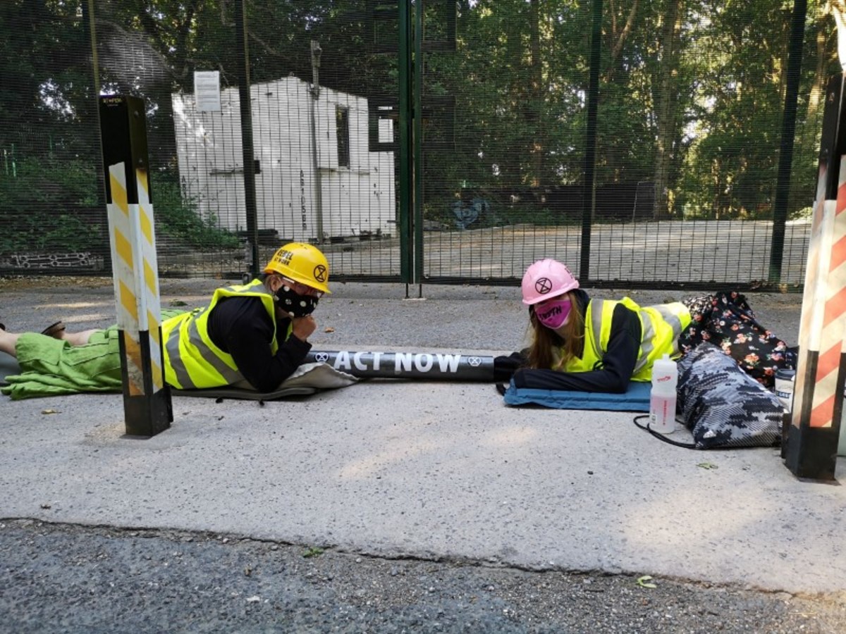 Two activists entered the site and climbed aboard a shipping container and hung up a banner saying "Climate Emergency" while two others locked themselves together to block the entrance to the site, the Extinction Rebellion spokeswoman said.