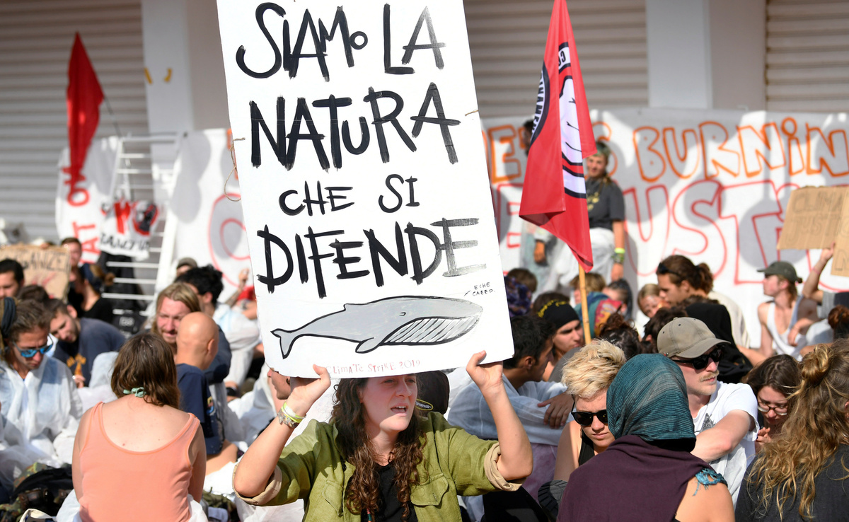 The protesters, who belong to Italian and foreign groups, were taking part in a five-day Venice Climate Camp event.