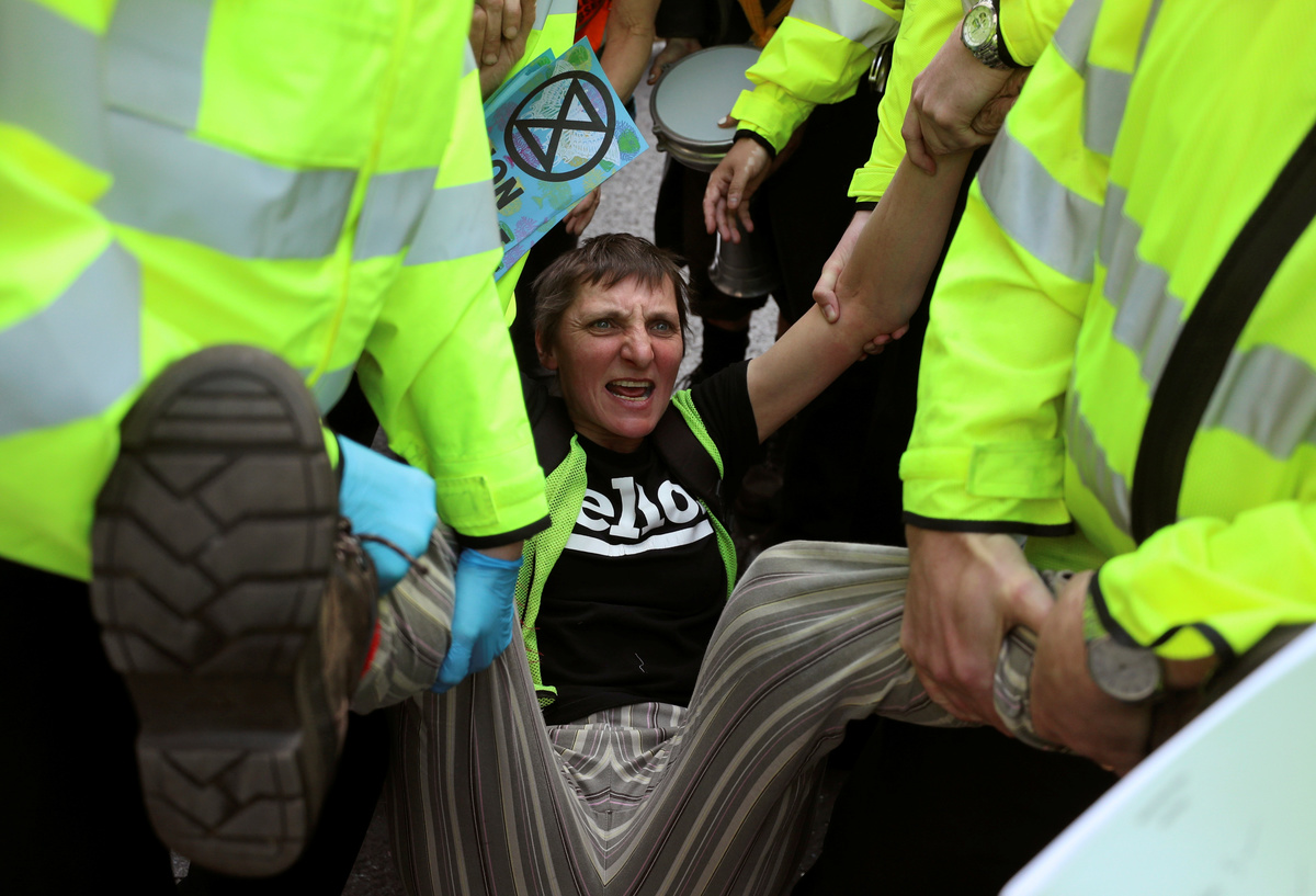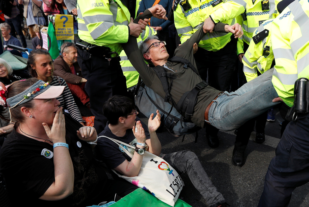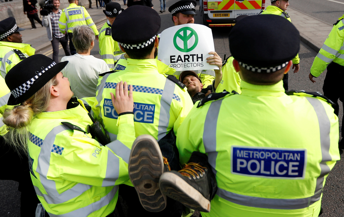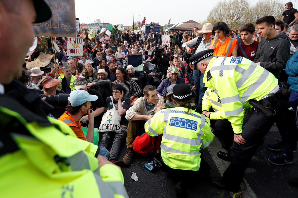 The group has called for non-violent civil disobedience to push the British government to reduce net greenhouse gas emissions to zero by 2025 and to stop what it says is a global climate crisis.