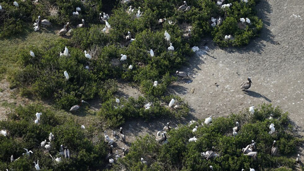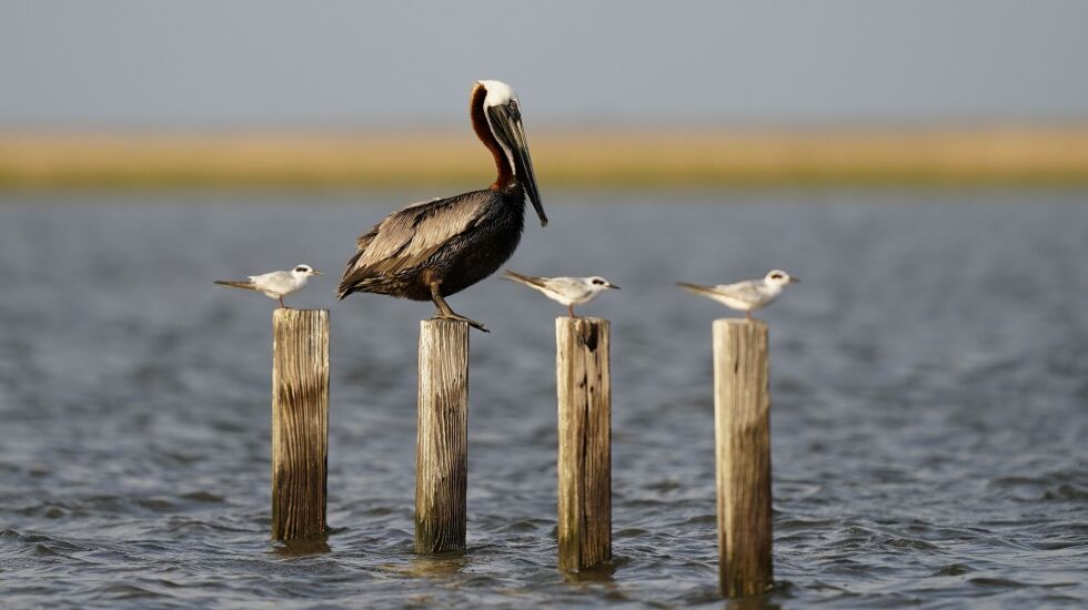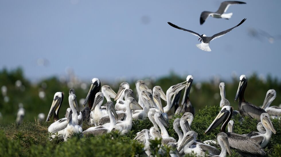 CHAUVIN, La. — Sliding off the side of her small boat, seabird biologist Bonnie Slaton wades through waist-high water as brown pelicans soar overhead until she reaches the shores of Raccoon Island.