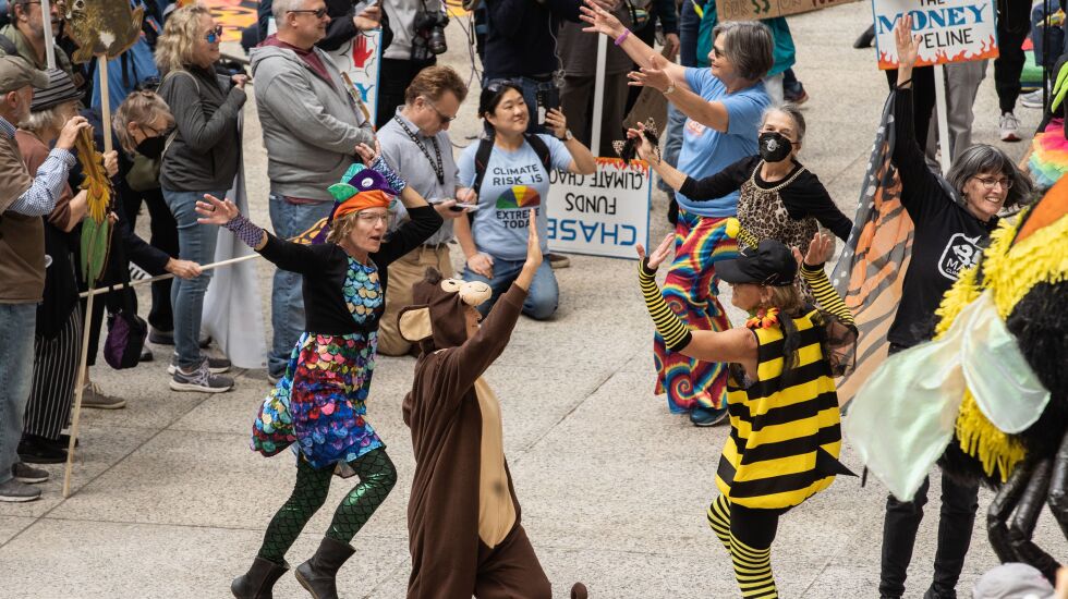 “They are the money pipeline,” said Larry Coble, president of 350 Chicago, a climate change activist group. The banks “are the ones doing the financing for all the fossil fuel infrastructure. We want them to stop doing that. They need to start reinvesting in more renewable energy projects.”