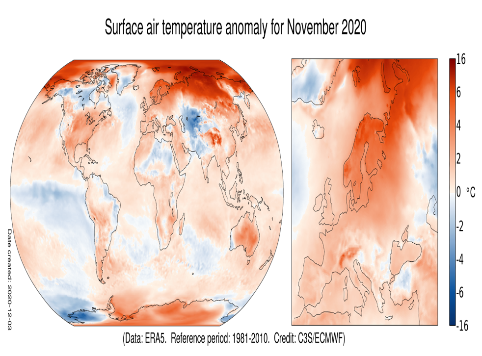November 2020 has been the world’s warmest since records began, and this year is on track to become the hottest year overall, according to the European Union’s climate monitoring service Copernicus.