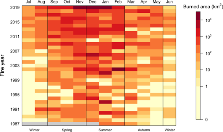 Repeated floods have devastated our east coast. Other extreme events are getting worse too. Since 1987 bushfires have burnt increasing areas, peaking in 2019.